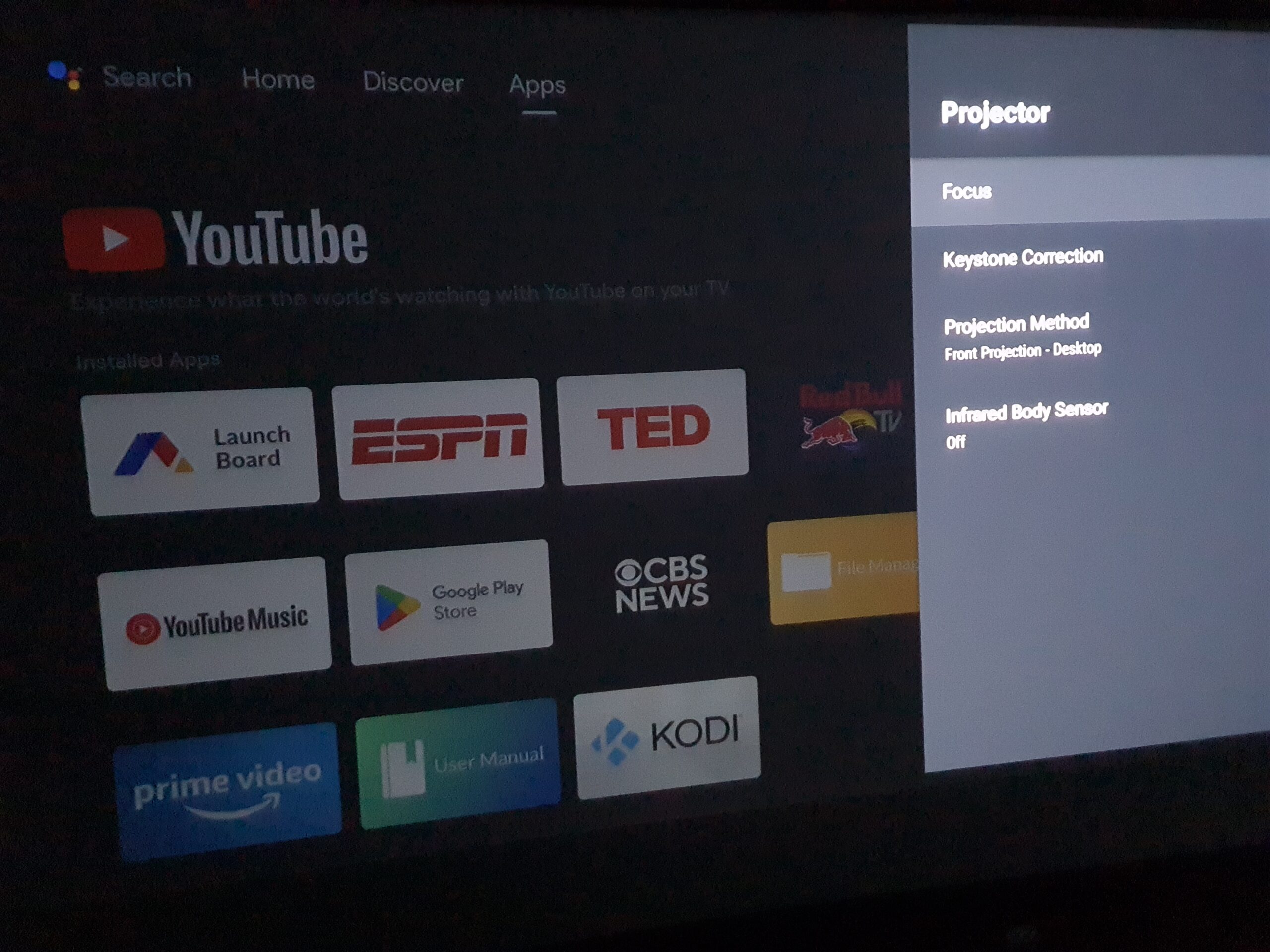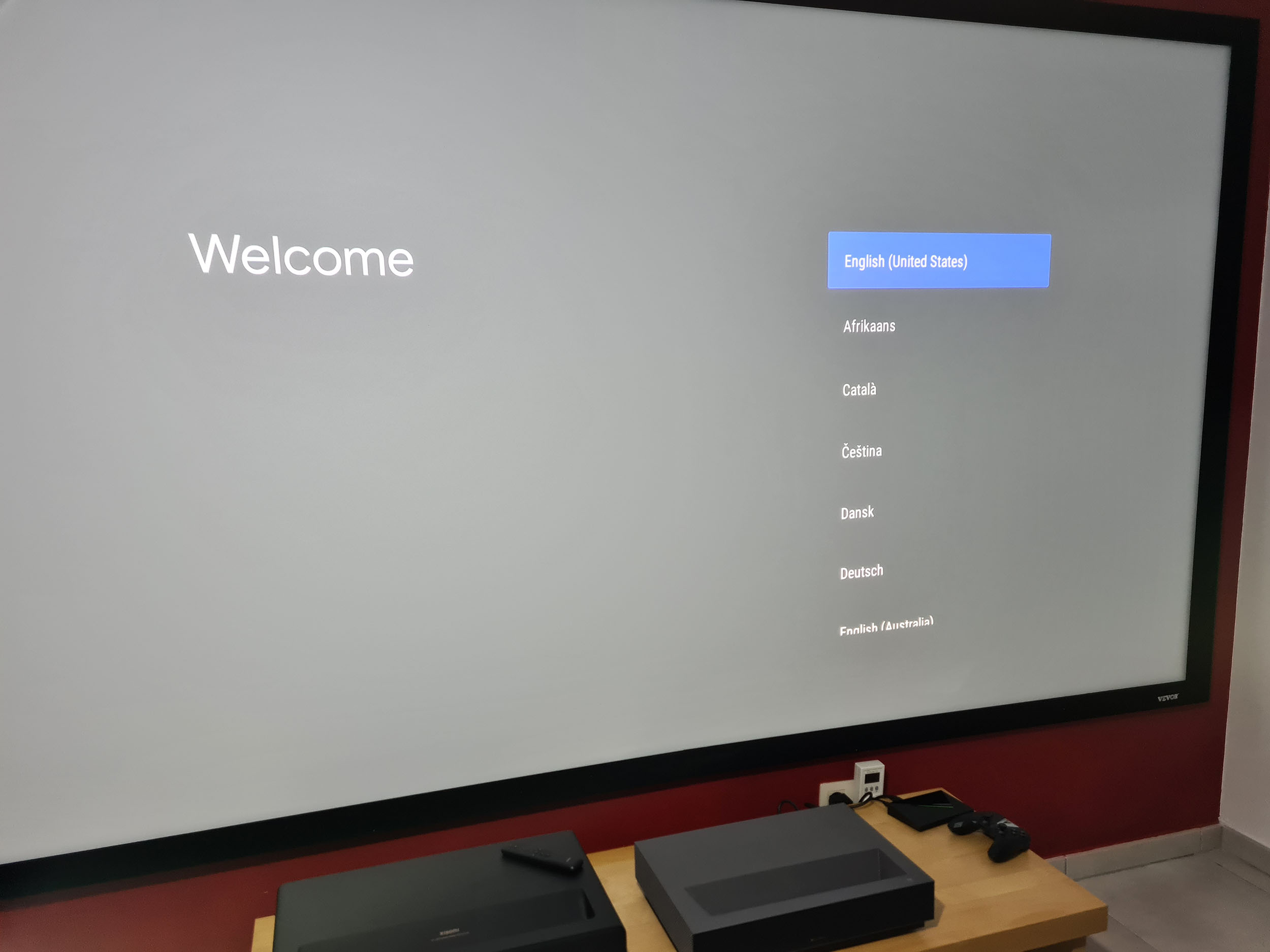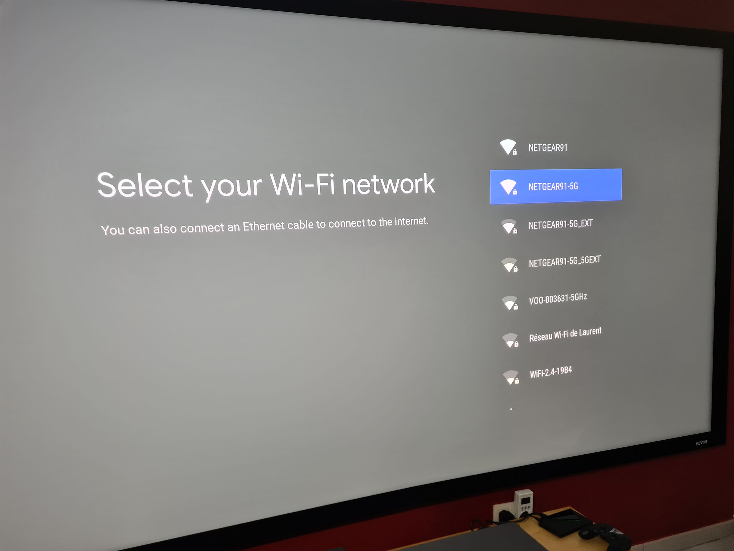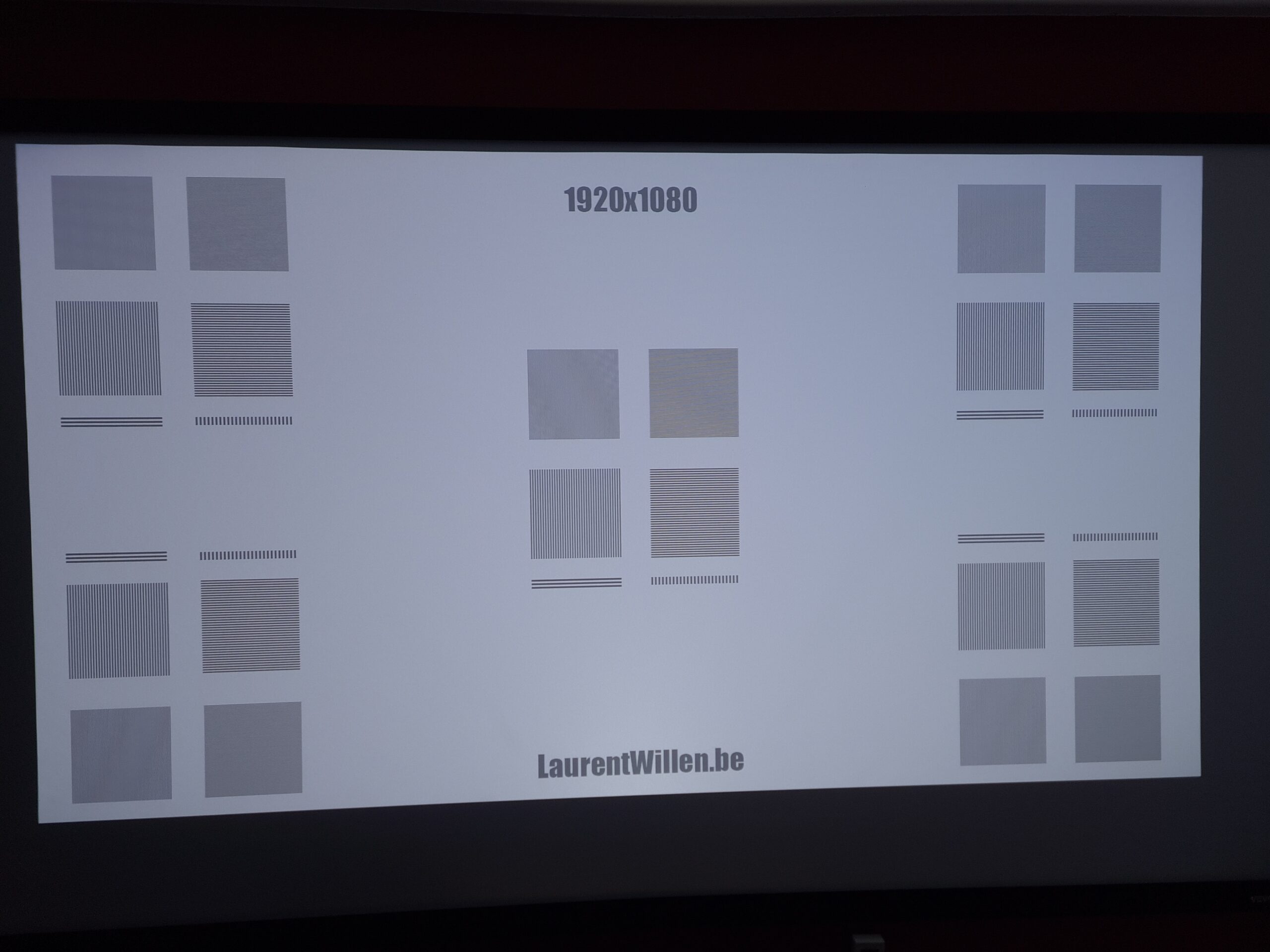 Mon application Google n'a pas trouvé le projecteur, je suis donc passé par la configuration manuelle et tout s'est déroulé sans problèmes. Le projecteur était par contre assez mal réglé à la sortie de la boite car l'image était assez floue en périphérie mais après le réglage du focus, la netteté est devenue uniforme. Sur les images précédentes, vous pouvez également vous rendre compte de l'effet qu'une lumière forte peut avoir sur l'image. Si vous vous achetez un projecteur pour regarder des films à la lumière du jour, vous allez être déçu car la lumière forte (lumière artificielle ou lumière du jour) va détériorer le contraste. Ce n'est pas un problème spécifique de ce projecteur, c'est un problème générique sur une grande majorité de projecteurs même si vous achetez un écran technique permettant d'augmenter le contraste.