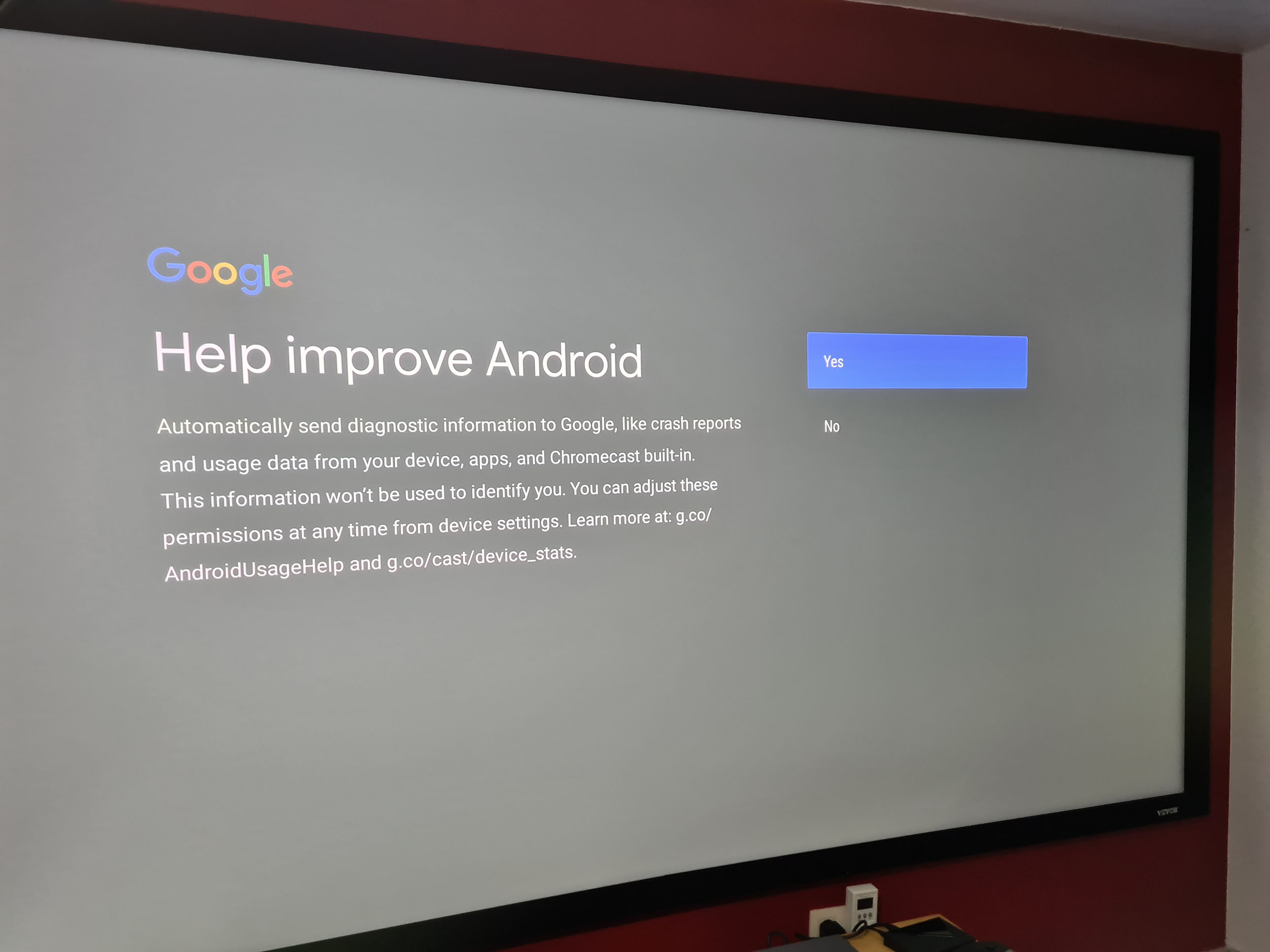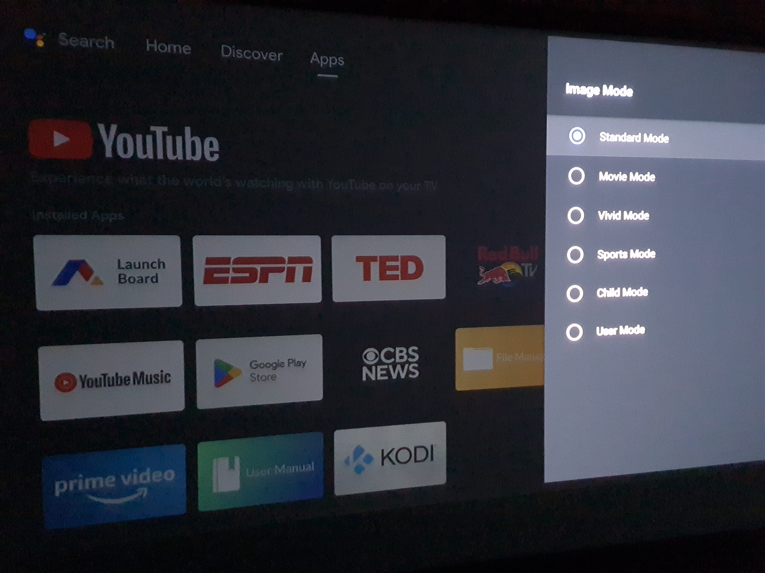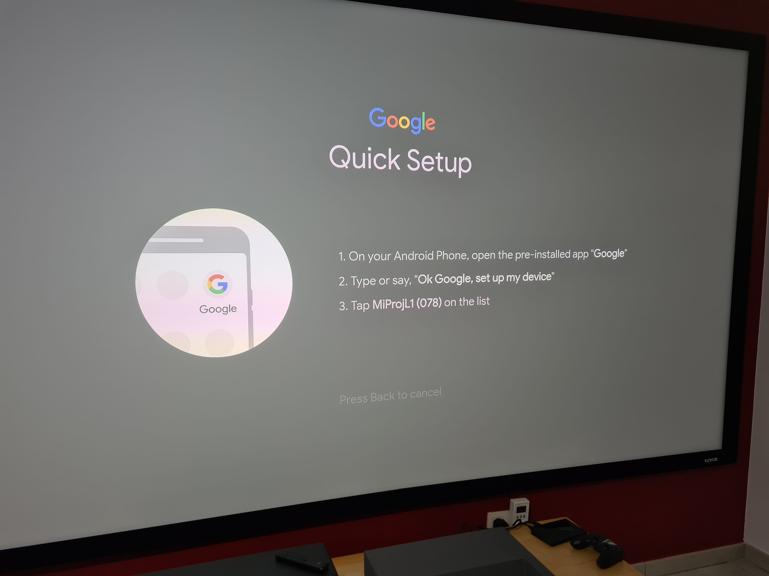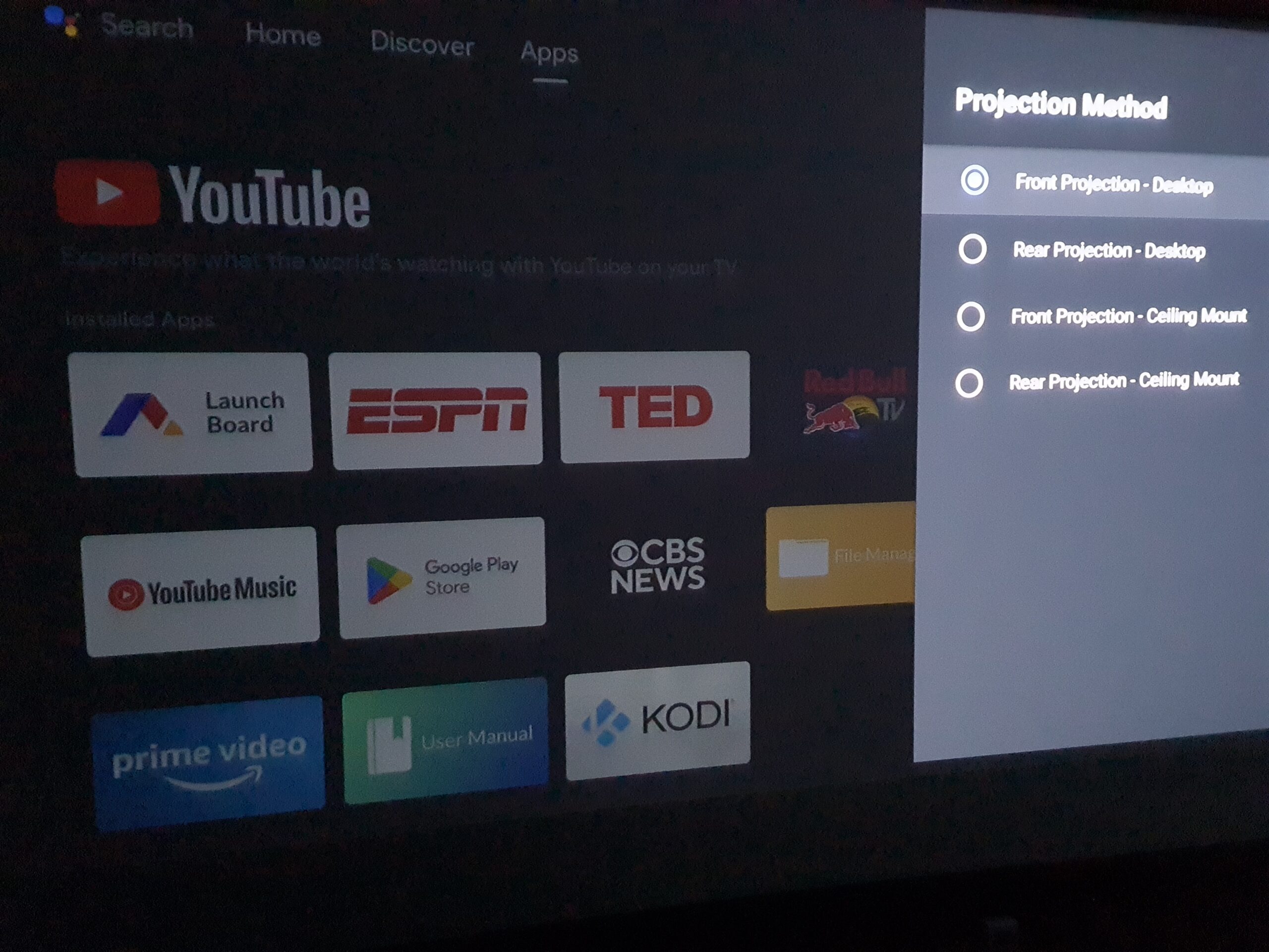 Mon application Google n'a pas trouvé le projecteur, je suis donc passé par la configuration manuelle et tout s'est déroulé sans problèmes. Le projecteur était par contre assez mal réglé à la sortie de la boite car l'image était assez floue en périphérie mais après le réglage du focus, la netteté est devenue uniforme. Sur les images précédentes, vous pouvez également vous rendre compte de l'effet qu'une lumière forte peut avoir sur l'image. Si vous vous achetez un projecteur pour regarder des films à la lumière du jour, vous allez être déçu car la lumière forte (lumière artificielle ou lumière du jour) va détériorer le contraste. Ce n'est pas un problème spécifique de ce projecteur, c'est un problème générique sur une grande majorité de projecteurs même si vous achetez un écran technique permettant d'augmenter le contraste.