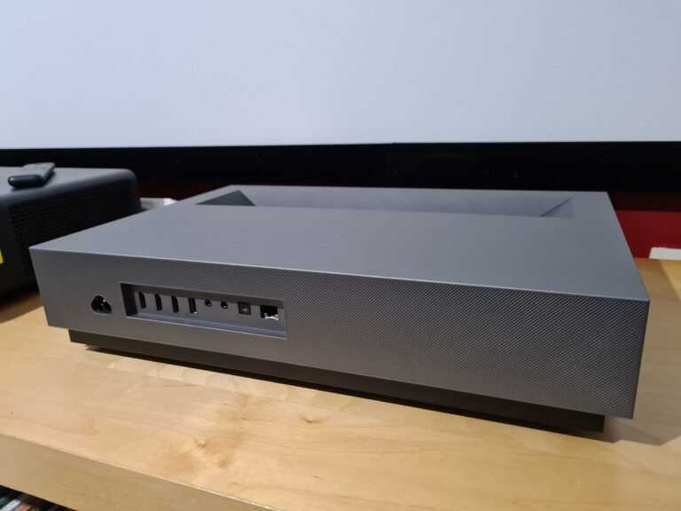 Je trouve que le Wemax Nova a une esthétique sobre et futuriste. Le projecteur est un peu plus petit que le Xiaomi Laser Cinema et tous les bords sont anguleux, il n'y a aucune courbe. Le choix entre une structure avec des courbes ou une structure anguleuse n'affecte pas les propriétés du projecteur, c'est juste une question de gout. Je trouve par contre que le plastique utilisé par Wemax a une aura plus qualitative que le plastique noir standard du Xiaomi, le Wemax a l'air plus sophistiqué.