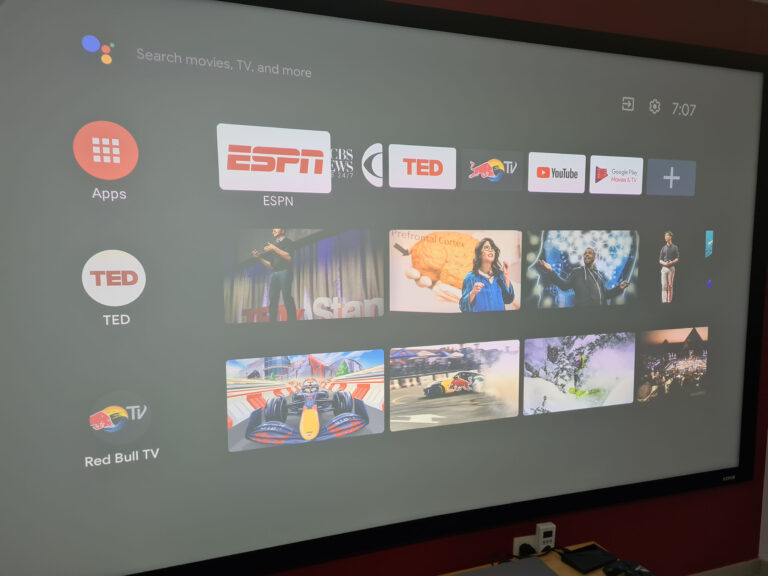 L'interface du projecteur est pilotée par Android TV, ceci peut paraitre anodin mais ce n'est pas le cas pour tous les projecteurs de ce type. Les Xiaomi et Fengmi tournent habituellement sous un système d'exploitation chinois et le CinemaX de chez Optoma n'a carrément pas de système d'exploitation natif. C'est un confort indéniable qui vous évitera de devoir utiliser une solution externe et vous donnera accès à la plupart des applications du Play Store. A noter que Netflix n'est pas nativement disponible, j'imagine qu'il s'agit encore une fois d'une histoire de certification, Wemax n'est pas le seul constructeur a avoir le problème.