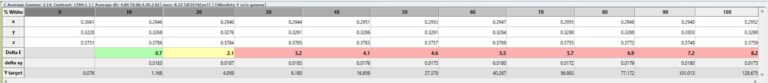 Le dE doit donc être le plus bas possible mais les projecteurs on rarement un dE inférieur à 3 en sortie de boite. Ils sont souvent entre 5 et 10, seule une calibration permet de régler correctement les couleurs.