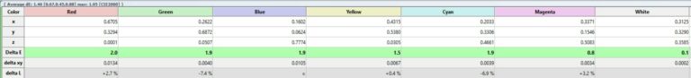 J'ai mesuré la fidélité des couleurs sur tous les modes d'image disponibles et j'ai ensuite modifié les paramètres pour améliorer la qualité d'image. La précision de mon matériel ne me permet pas d'avoir la valeur exacte de l'écart des couleurs mais elle donnera une excellente indication de ce à quoi vous pouvez vous attendre.