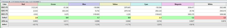 J’ai obtenu un delta E de 1.73 avec mon écran blanc. Le blanc est donc meilleur que la mesure de référence mais le rouge a augmenté. Mon écran blanc a tendance à renforcer les rouges, il n’est pas tout à fait neutre.