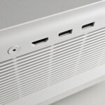 Son format à bascule lui offre une grande flexibilité de placement mais il faut être conscient de la conséquence sur la qualité d’image. Si la projection n’est pas perpendiculaire à l’écran vous allez provoquer une correction d’image trop importante. Vous pourriez voir apparaitre un gros bord gris tout autour de votre image.