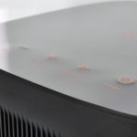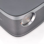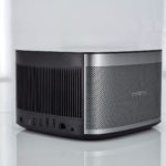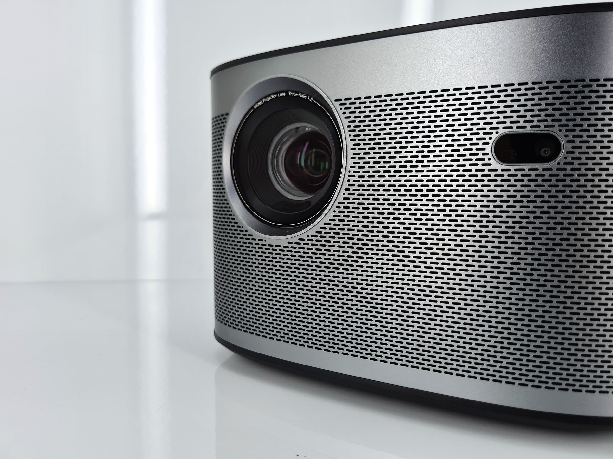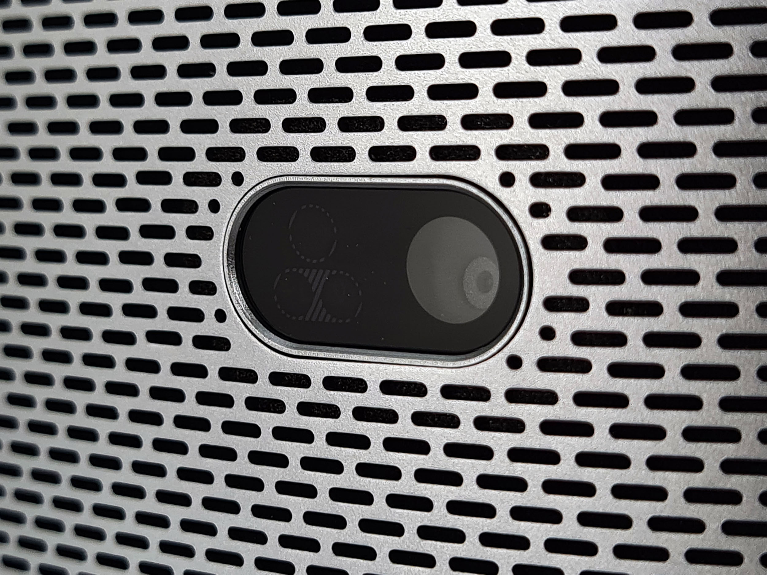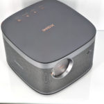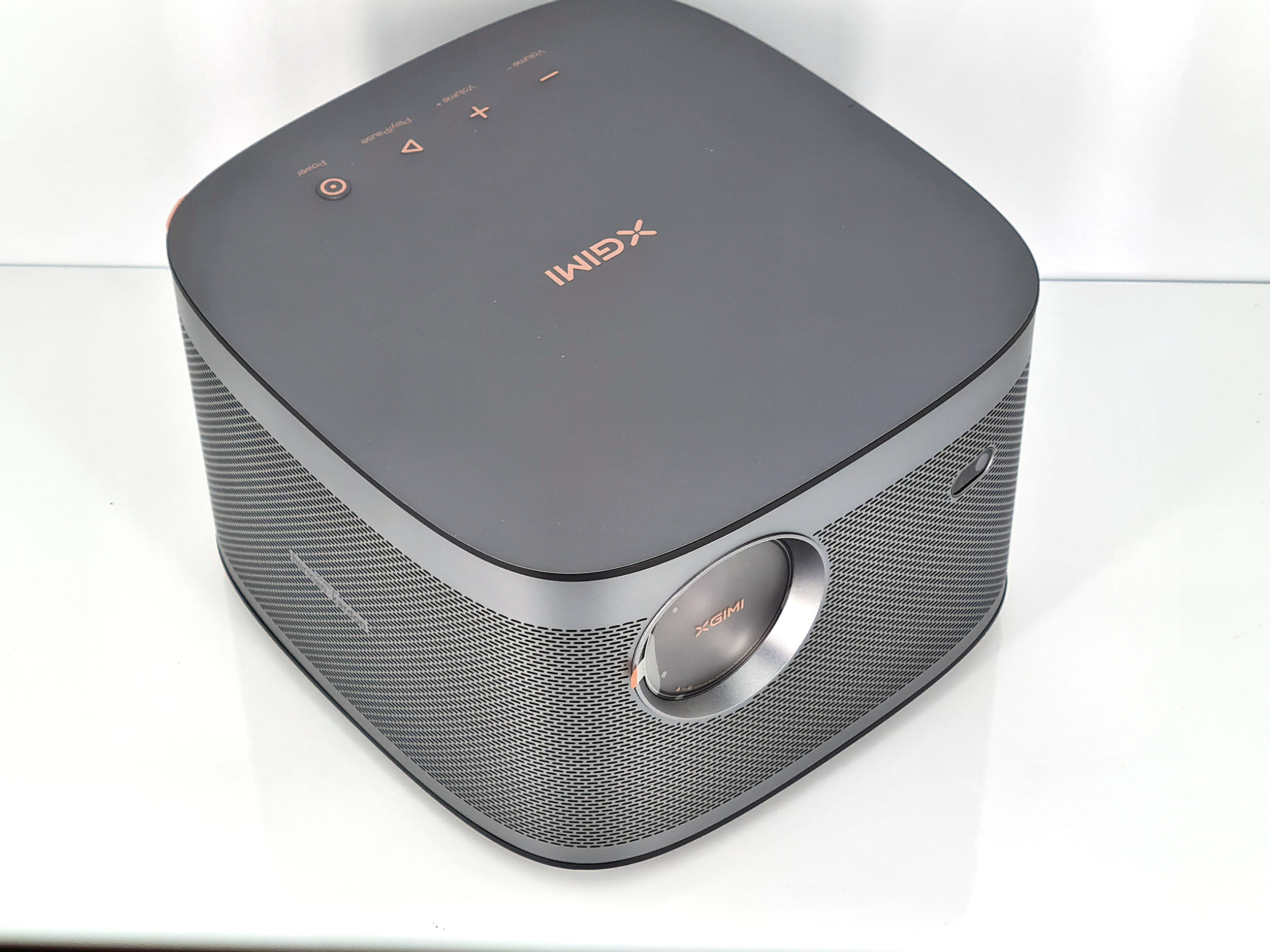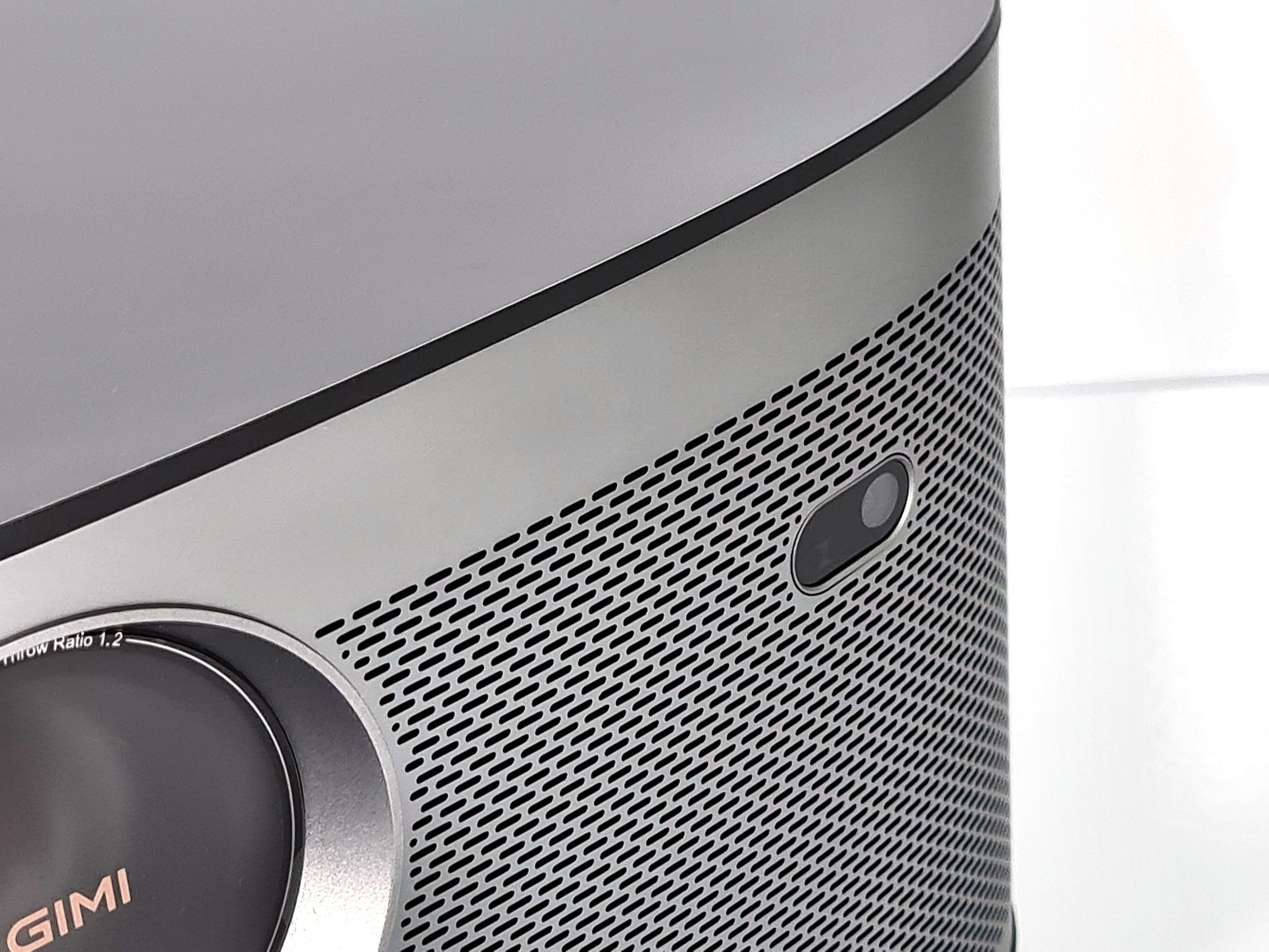 La façade métallique est uniquement interrompue par la lentille et le capteur de profondeur, ce capteur permet de faire la mise au point de façon automatiquement. Le Xgimi Horizon règle la netteté automatiquement mais aussi le positionnement horizontal/vertical de l'image.