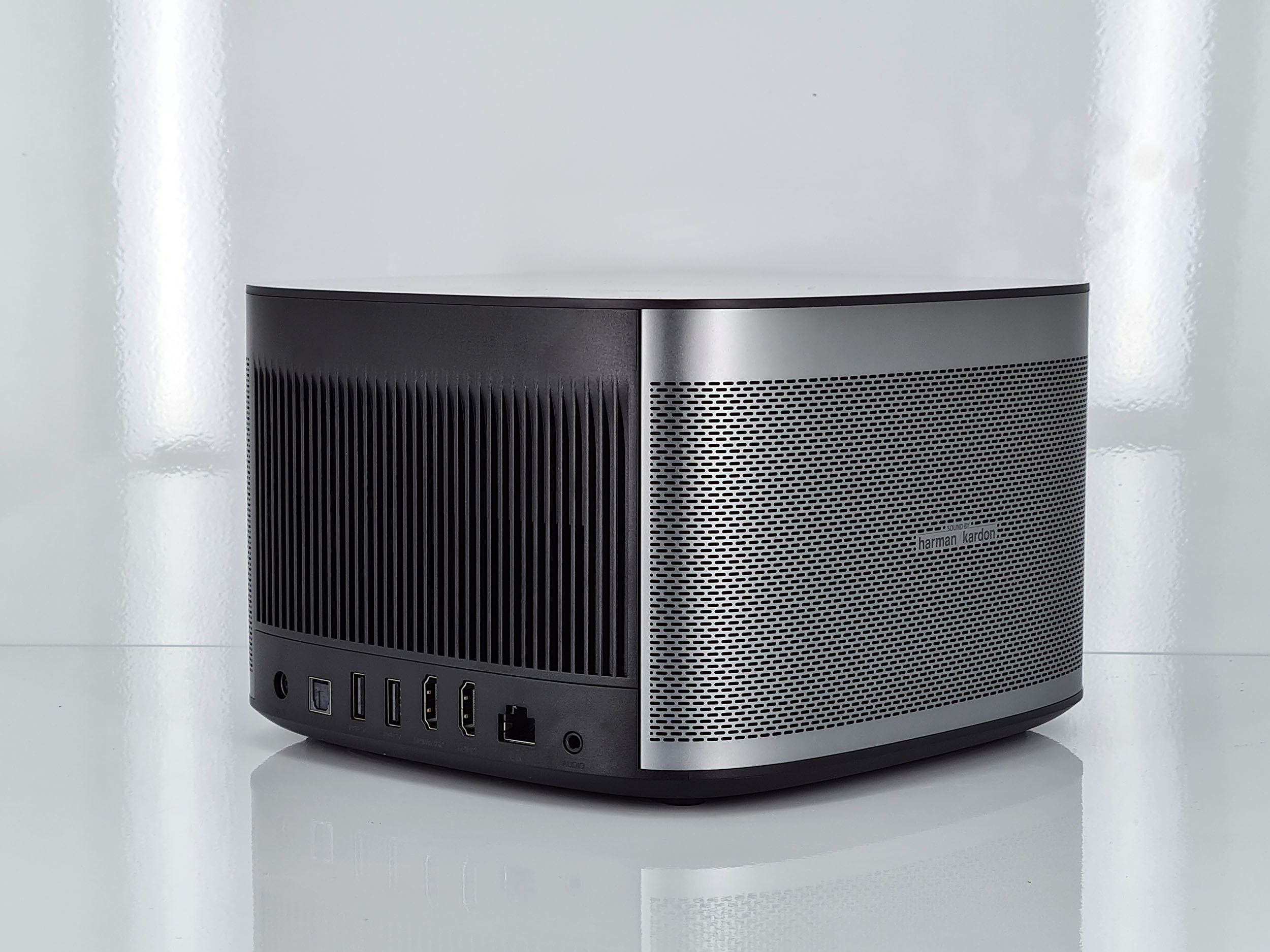 Le Xgimi Horizon reprend dans les grandes lignes le design des produits précédents (H1, H2, H3, ...) avec sa forme cubique imposante qui intègre des enceintes Harman-Kardon. Le bloc optique est par contre plus grand, c'est également le cas pour les autres projecteurs utilisant le même bloc optique comme le Nebulas Cosmos ou Le Xiaomi Mi Smart 2 Pro. C'est une question de gout mais j'aime assez bien ce design, le projecteur a une finition premium et peut sans problème trôner dans un salon. La connectique est généreuse avec 2 ports HDMI, 2 ports USB 2.0, une sortie jack, une sortie spdif et un port ethernet. Même si le projecteur fonctionne très bien en wifi, la présence d'un port ethernet va vous donner la possibilité d'obtenir plus de bande passante avec une meilleure stabilité.