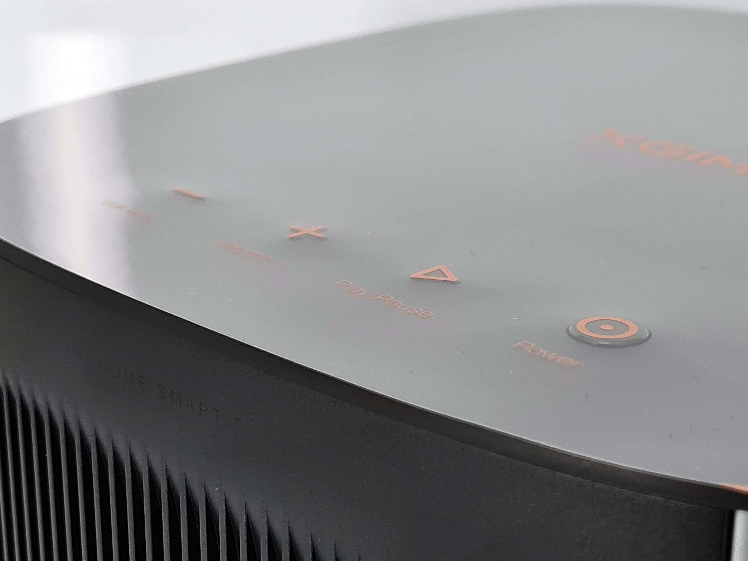 J'ai été confronté à un petit problème lors du démarrage, c'est un détail mais si vous êtes dans la même situation que moi, vous allez devoir trouver une solution. Le bouton d'allumage du Xgimi Horizon se trouve au dessus du projecteur et il ressort légèrement de la surface plane du projecteur. Ce n'est en soi pas un problème sauf si vous décidez de poser le projecteur sur son dos comme j'ai l'habitude de le faire car en faisant cela, le projecteur va s'éteindre car il appuie sur le bouton d'allumage.