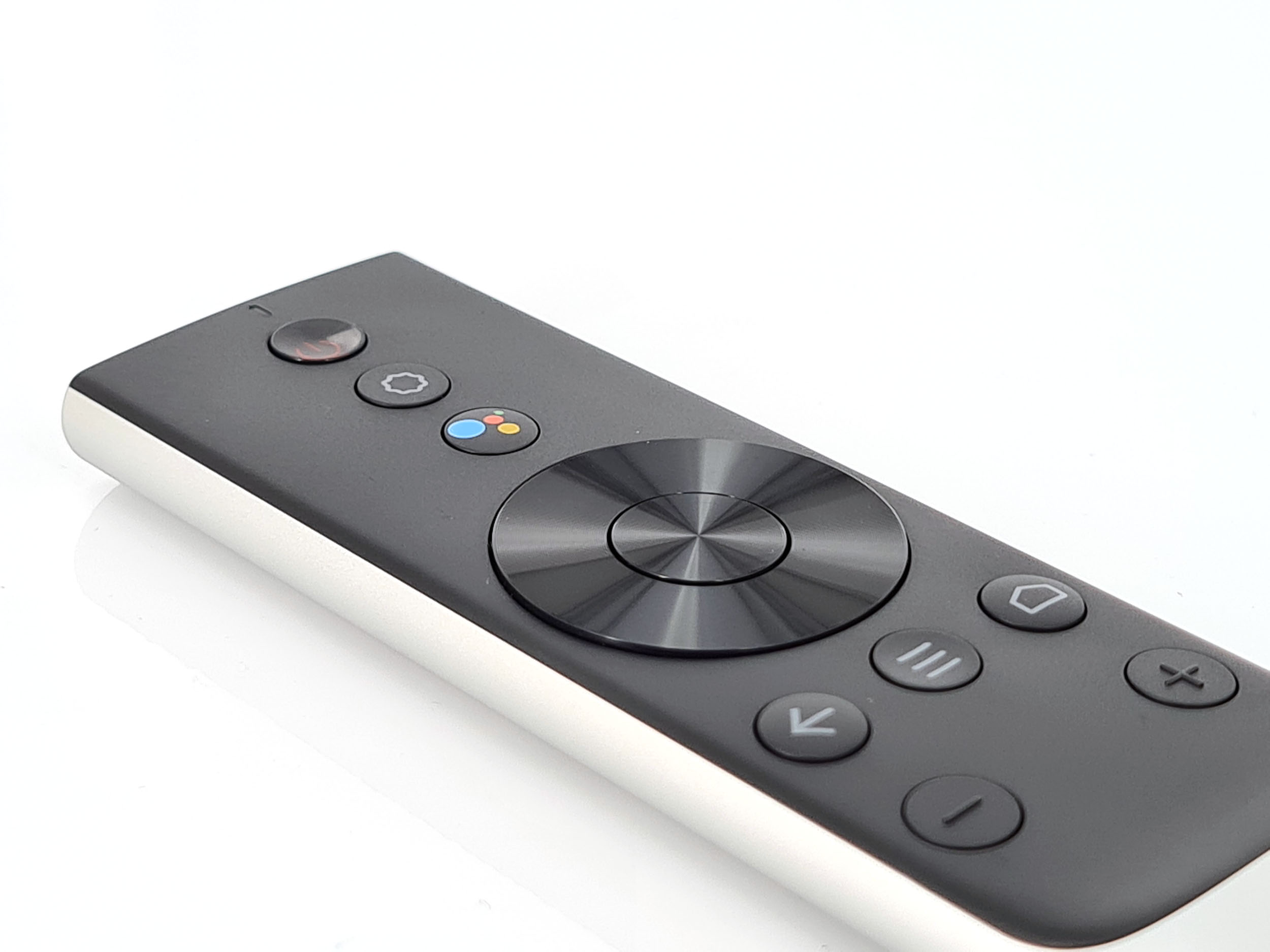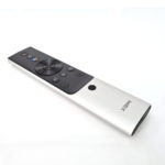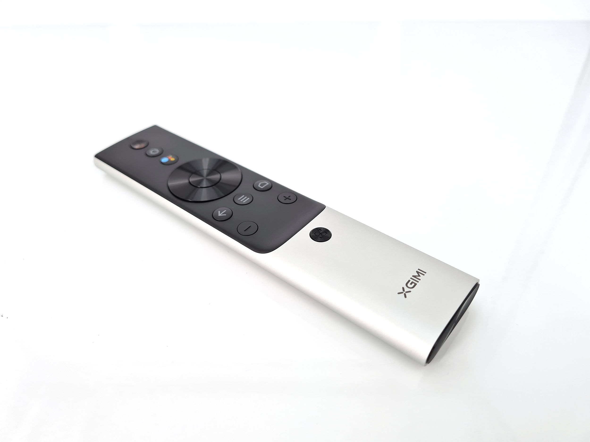 Ce qui m'a surpris en premier avec la télécommande c'est son poids, elle est nettement plus lourdes que les autres télécommandes que j'ai testées. Son aspect métallique n'est donc pas qu'un effet, elle est réellement recouverte d'une matière métallique. La télécommande donne une impression plus premium que la plupart des télécommandes en plastique des autres projecteurs. La télécommande n'est pas rétro-éclairée, il faudra donc chercher son chemin au toucher et s'habituer au positionnement des boutons. Je trouve que placer le bouton d'accès aux applications au milieu n'est pas une bonne idée, la plupart des constructeurs ont créé une habitude en plaçant le bouton "home" à cet endroit et les boutons les plus couramment utilisés ("Home" et "Retour") ne sont pas les uns à côtés des autres. J'ai la même remarque pour les boutons de volume, ces boutons sont très éloignés alors qu'ils sont principalement utilisés ensemble et le relief de ces deux boutons est moins important, il faut donc un peu chercher pour trouver le volume.