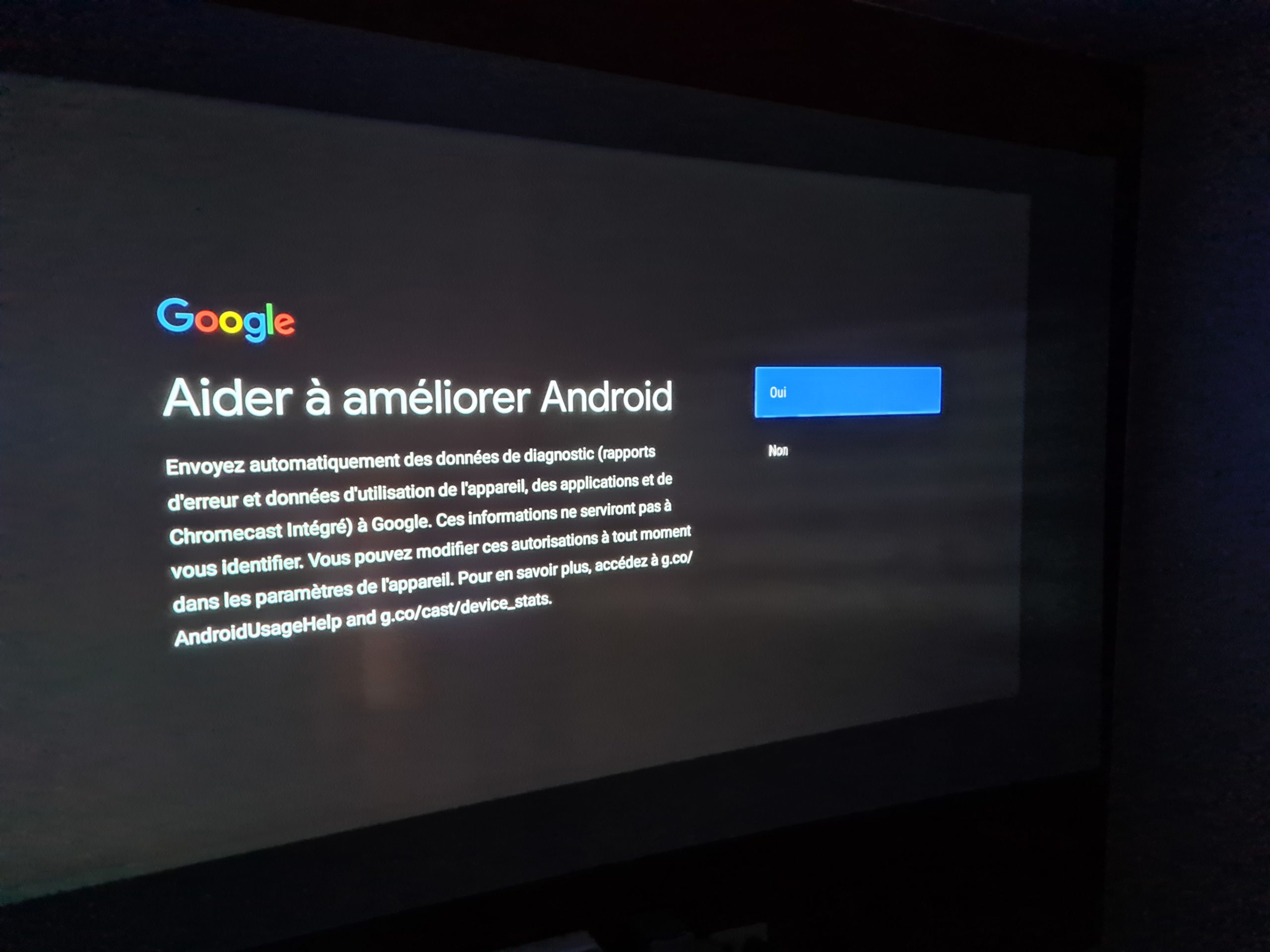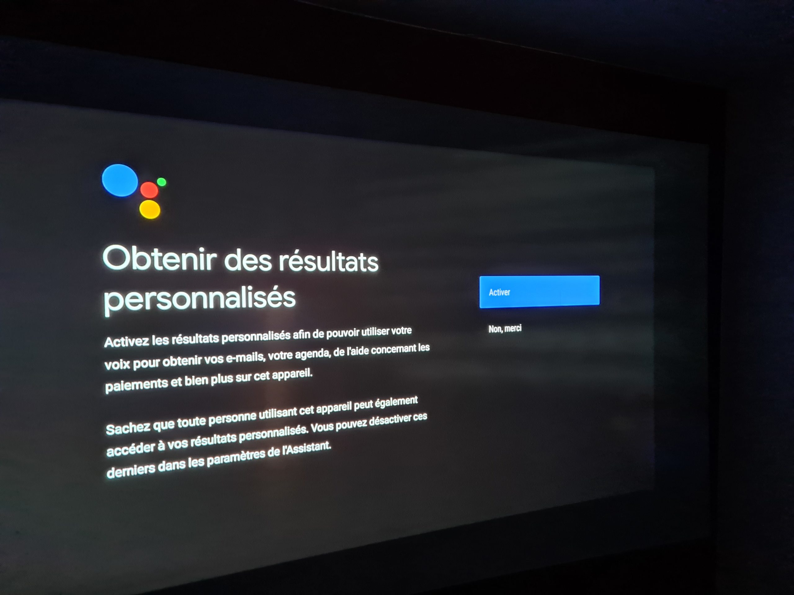 Le Xgimi Horizon tourne sous Android TV, la configuration suit donc dans les grandes lignes ce que l'on retrouve sur les autres projecteurs de ce type. Il faut d'abord associer la télécommande au projecteur et ensuite associer son compte Google avec le projecteur. L'association peut être faite par le biais d'un téléphone, vous ne devez donc pas taper une adresse mail et un mot de passe avec votre télécommande, c'est très pratique. Vous avez ensuite tout une série d'écran avec le "questionnaire médical" habituel de chez Google, la procédure prend quelques minutes au maximum.