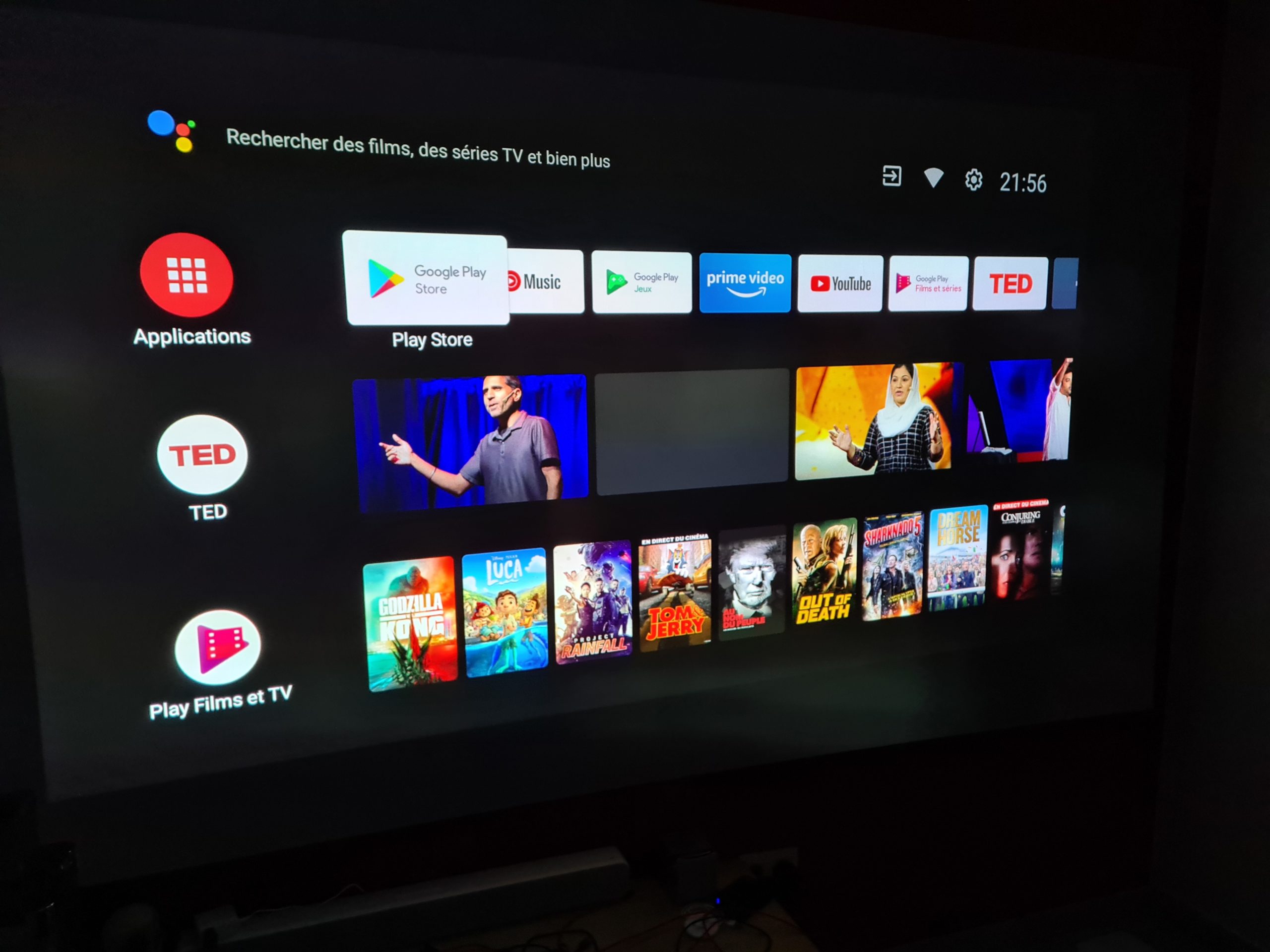 Les projecteurs Xgimi ont beaucoup évolué depuis les premiers H1 / H2 car les projecteurs tournent désormais sous Android TV 9.0. Ceci a l'avantage de donner un accès au Play Store (mais avec des applications prévues pour ce genre d'appareil) et l'interface de controle est la même que sur les autres projecteurs sous Android TV. C'est une expérience simple et efficace qui peut être complètement pilotée avec une télécommande. Xgimi a rajouté quelques menus de configuration propre à son projecteur mais dans l'ensemble je retrouve la plupart des menus présents dans les autres projecteurs.Xgimi offre la possibilité de configurer la qualité de l'image avec des réglages comme la netteté, le contraste, la saturation ou encore le réglage des couleurs individuelles. Bien que le Xgimi Horizon offre une bonne qualité d'image à la sortie de la boite, il est possible d'obtenir une meilleure image en manipulant les différents paramètres. J'ai d'ailleurs proposé quelques valeurs pour vous aider à améliorer votre image un peu plus haut dans cet article. Ces valeurs vont aussi dépendre de votre surface de projection mais il est fort probable que vous deviez diminuer l'importance du bleu et augmenter l'importance du rouge.