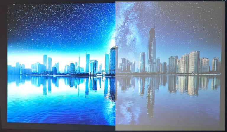 J'ai mesuré une latence inférieure à 30 ms lorsque le mode basse latence est activé dans les paramètres. Avec une latence aussi basse, vous pouvez jouer à n'importe quel jeu demandant un temps de réaction rapide, ce projecteur est donc parfaitement adapté pour jouer avec une console. La réduction de latence ne fonctionne que pour les appareils branchés en HDMI. Il y a une section gaming dans le test vidéo qui illustre l'expérience en jeu avec ShadowRunner sur une Nvidia Shield.