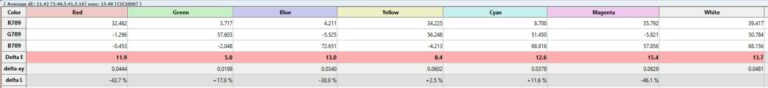 | Configuration | dE white | Temp white | dE colors | dE grey | Gamma | Contrast |