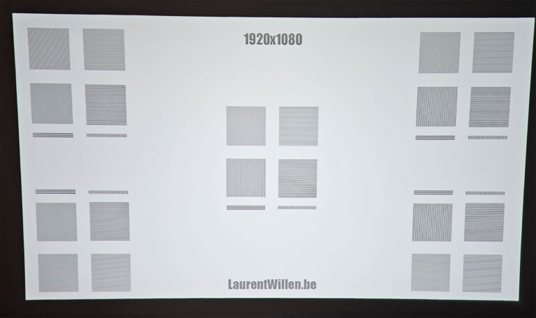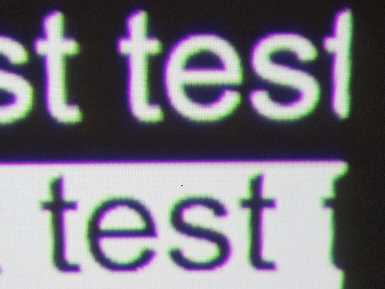 Cette netteté va par contre se dégrader si vous projetez votre image sur une surface trop importante, vous allez également voir apparaitre un écart entre les pixels et voir apparaitre du vert et du rouge sur les bords blancs comme ceci: