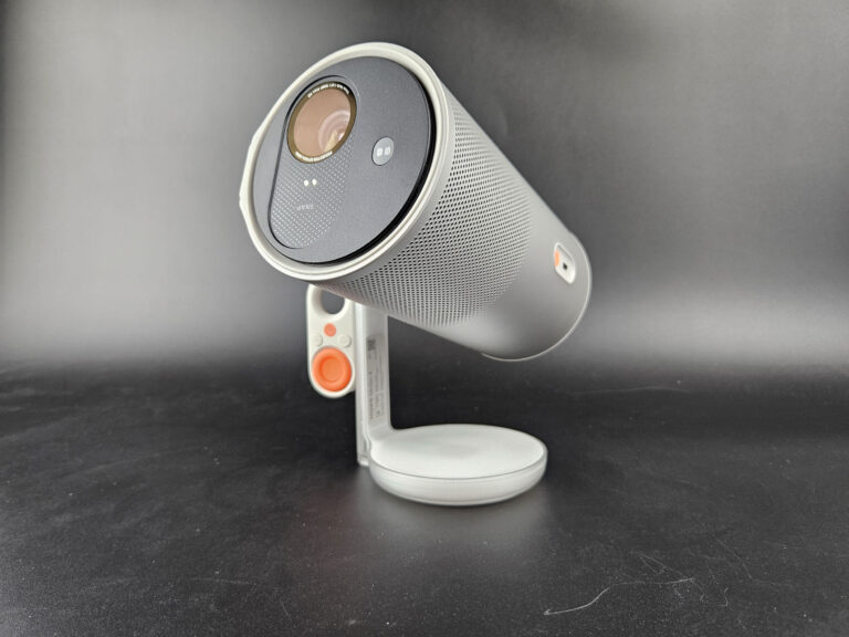La quatrième génération de Mogo reprend dans les grandes lignes le format de la troisième génération avec quelques différences. Le format cylindrique est le même mais la couleur est différente. XGIMI avait opté pour un teinte de type champagne pour le Mogo 3, celui-ci est plutôt gris métallique. Je préfère cette version, ça lui donne un côté plus premium je trouve.