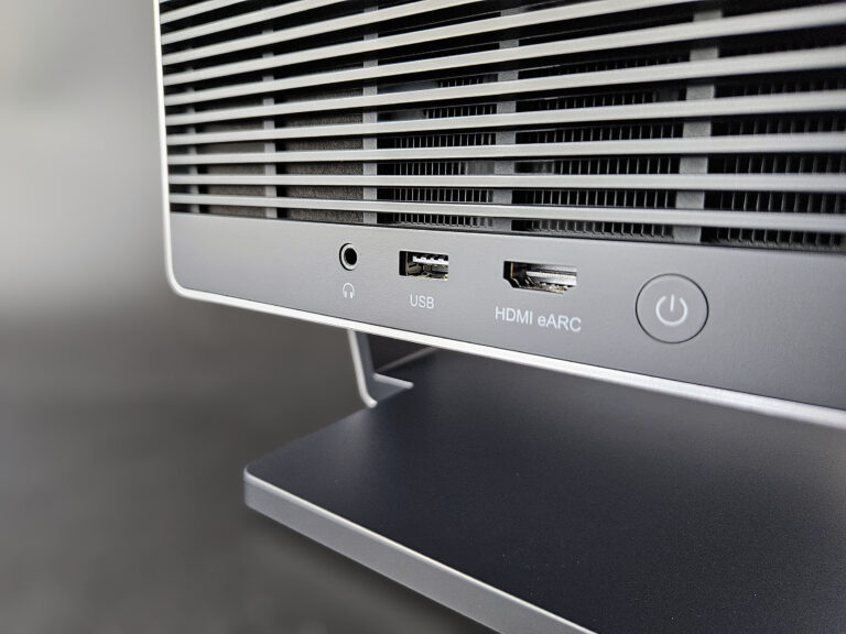 La connectique à l'arrière est limitée au minimum avec uniquement un port USB, une sortie casque et un port HDMI en eARC. Comme il s'agit ici de la version chinois, vous allez devoir lui associer une solution externe en HDMI et vous allez ainsi condamner cette sortie sans pouvoir brancher autre chose au projecteur. Ce n'est sans doute pas un problème pour une grande partie des acheteurs mais si vous avez l'intention de lui associer un lecteur Bluray ou un ampli, vous allez à chaque fois devoir brancher et débrancher le cable.