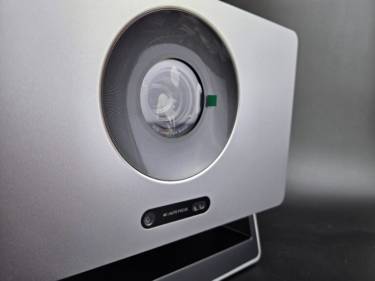 Le bloc optique a l'air très imposant avec cette ouverture mais c'est surtout un effet visuel parce que le bloc optique n'est pas plus grand que la plupart des autres projecteurs de ce type. Ce projecteur utilise d'ailleurs une puce DMD 0.47 comme de nombreux autres projecteurs plus couteux, c'est ici un avantage sur le XGIMI Mogo 4 Laser car cela permettra d'afficher une image plus grande sans effet de grille.