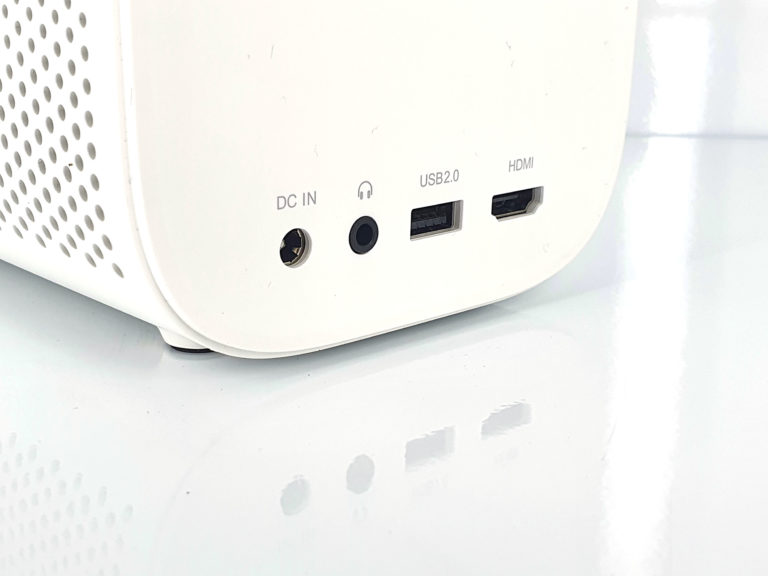 A l'arrière on retrouve une configuration minimaliste avec un connecteur pour l'alimentation, une sortie casque, un port HDMI et un port USB2. Dommage qu'il n'y ait pas de port Ethernet, cela aurait permis de palier au problème de wifi en 5Ghz mais trouver un port Ethernet sur un projecteur d'entrée de gamme c'est assez rare.