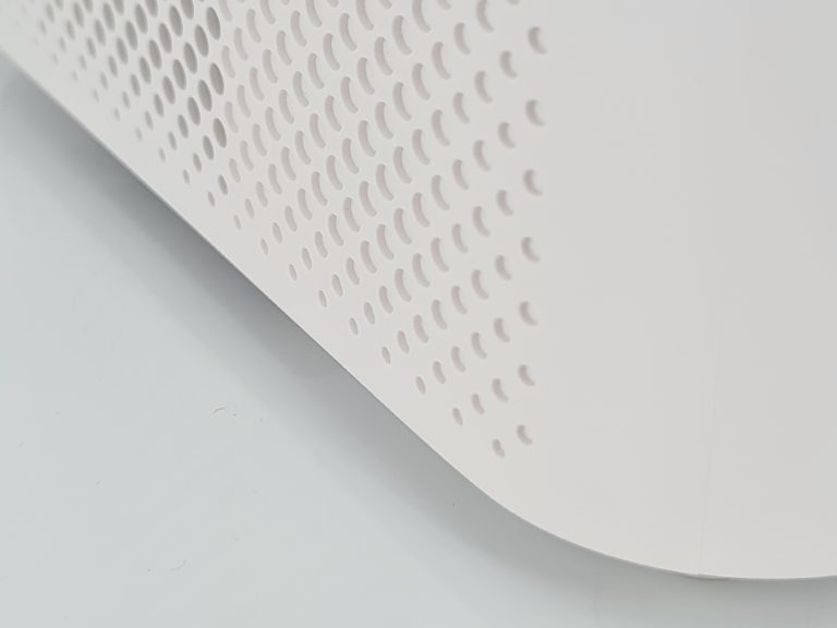 Les côtés sont percés d'alvéoles permettant d'évacuer la chaleur produite par le projecteur et permet aussi de diffuser le son.