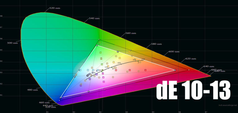 Si vous avez regardé les vidéos de démonstration un peu plus haut dans cet article, vous avez sans doute remarqué que les couleurs étaient un peu froides. Cela provient d'une proportion de bleu trop importante provenant de la source de lumière. Il est possible d'atténuer cet effet en changeant la température des couleurs dans le projecteur mais le bleu restera une couleur dominante. J'avais obtenu un dE de 13 avec les réglages d'usine et en réduisant le bleu, j'ai obtenu un dE de 10. La différence de couleur est toujours perceptible mais l'utilisation de couleurs plus chaudes améliorent l'image. Un dE de 10 peut paraitre très important car la plupart des smartphones que je teste obtiennent un dE proche de 3 mais pour un projecteur c'est assez courant (surtout dans cette gamme de prix).Luminosité
