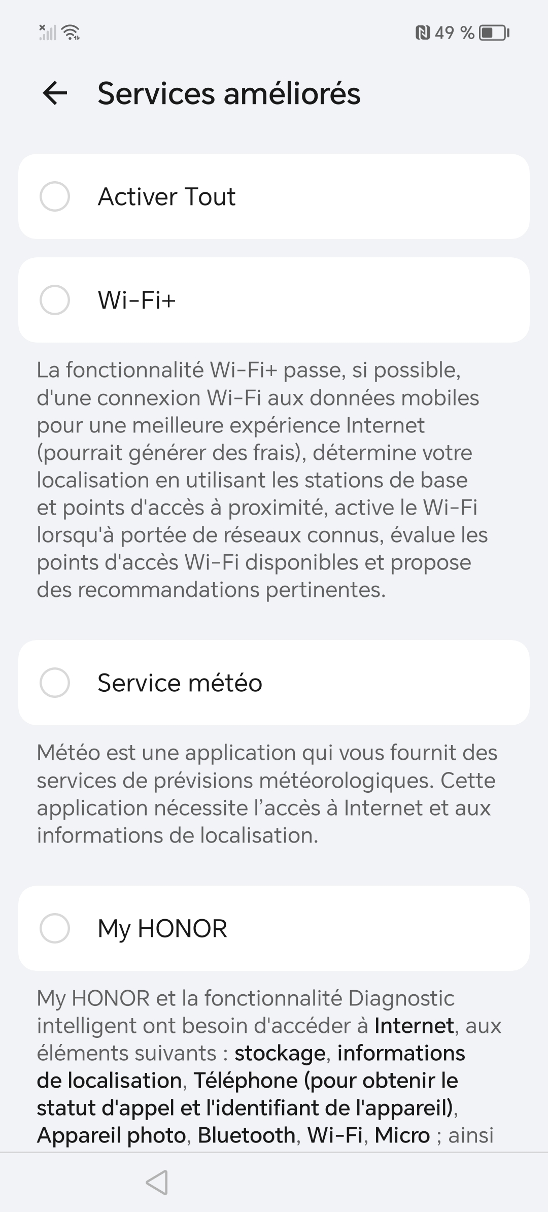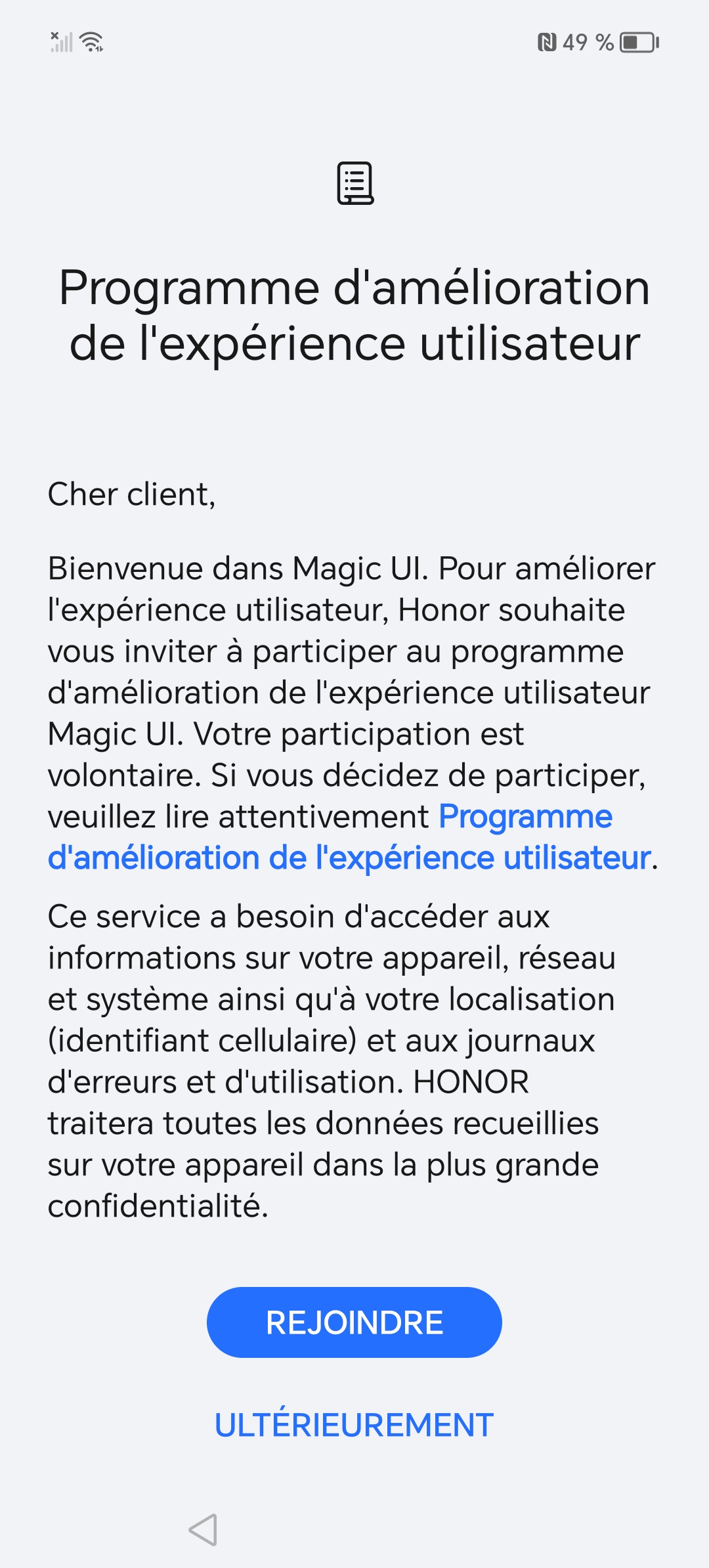 Je n'ai jamais été un grand fan des versions alternatives à Android avec des surcouches qui intègrent des tas d'applications non demandées et avec un système d'exploitation qui essaie toujours de vous inscrire à quelque chose. Lorsque j'ai démarré le Honor 90 Lite pour la première fois, j'ai été confronté à plusieurs reprises à des écrans m'incitant à m'inscrire à My Honor. C'est le genre de truc qui m'énerve parce que je ne vois pas trop l'intérêt et qu'il est presque impossible de passer à côté. Une fois cette première frustration passée, je me suis retrouvé avec un écran d'accueil rempli d'applications qui ne m'intéressent pas. D'autres constructeurs font la même chose, ce n'est donc pas une nouveauté.