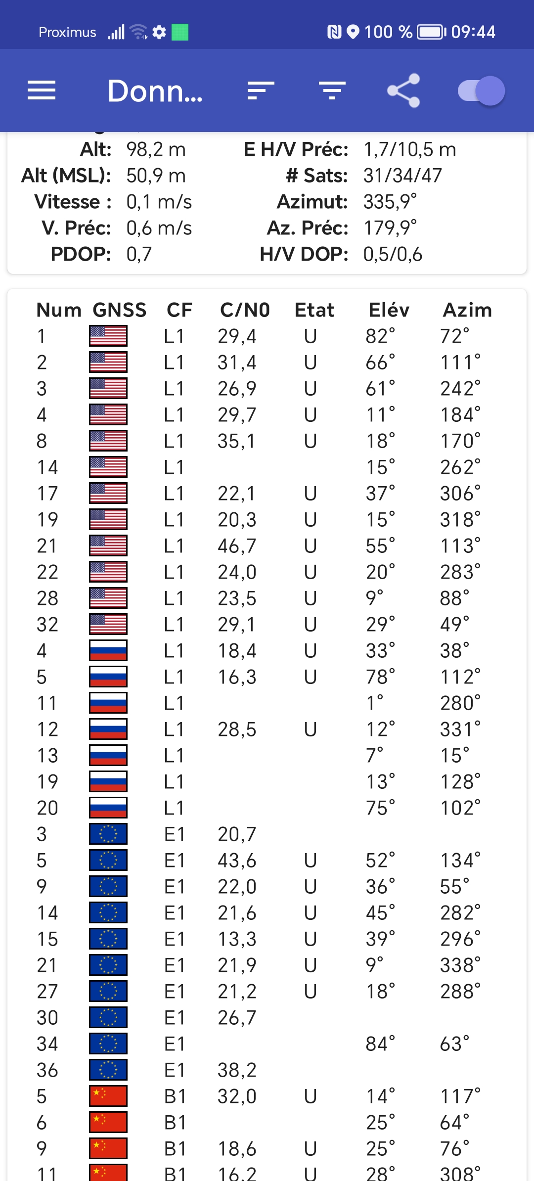 Précision GPS dans la moyenne