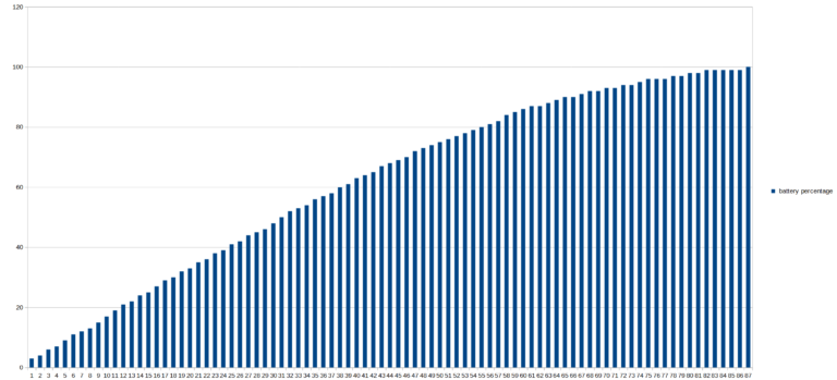 Le Honor 90 Lite est livré sans chargeur, je ne sais donc pas quel type de protocole il utilise pour optimiser la charge. J'ai utilisé comme d'habitude mon chargeur rapide UGREEN 100 watts pour mesurer le temps de charge. Il m'a fallu 88 minutes pour charger le téléphone de 3 à 100%. La charge est plus ou moins linéaire jusqu'à environ 80% et partir de là, la vitesse de charge diminue. Il faut 55 minutes pour les 80 premiers pourcents et 32 minutes pour les 20 derniers pourcents.