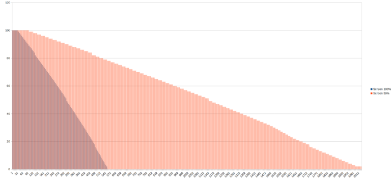Pour tester l'autonomie des batteries j'ai développé une application qui mesure le niveau de batterie minute par minute jusqu'à ce que la batterie soit vide. Cette application consomme environ une dizaine de pourcent des ressources du téléphone et je fais un test avec une luminosité d'écran à 100% et un autre avec une luminosité à 50%. Ce test vise à reproduire une utilisation contemplative d'un téléphone (ex: surfer sur internet, lire des articles, passer du temps sur les réseaux sociaux). Ces résultats ne sont pas valables pour une utilisation intensive type gaming/streaming. [battery]