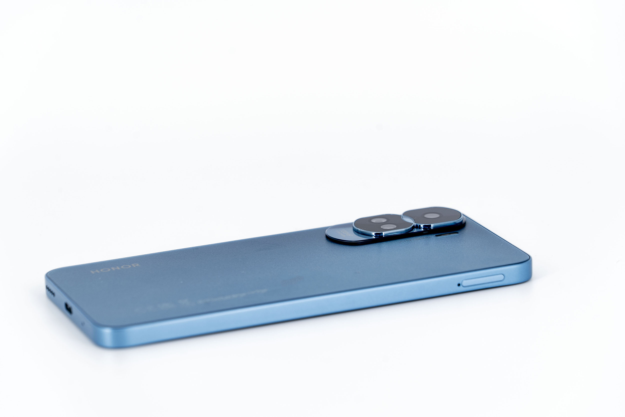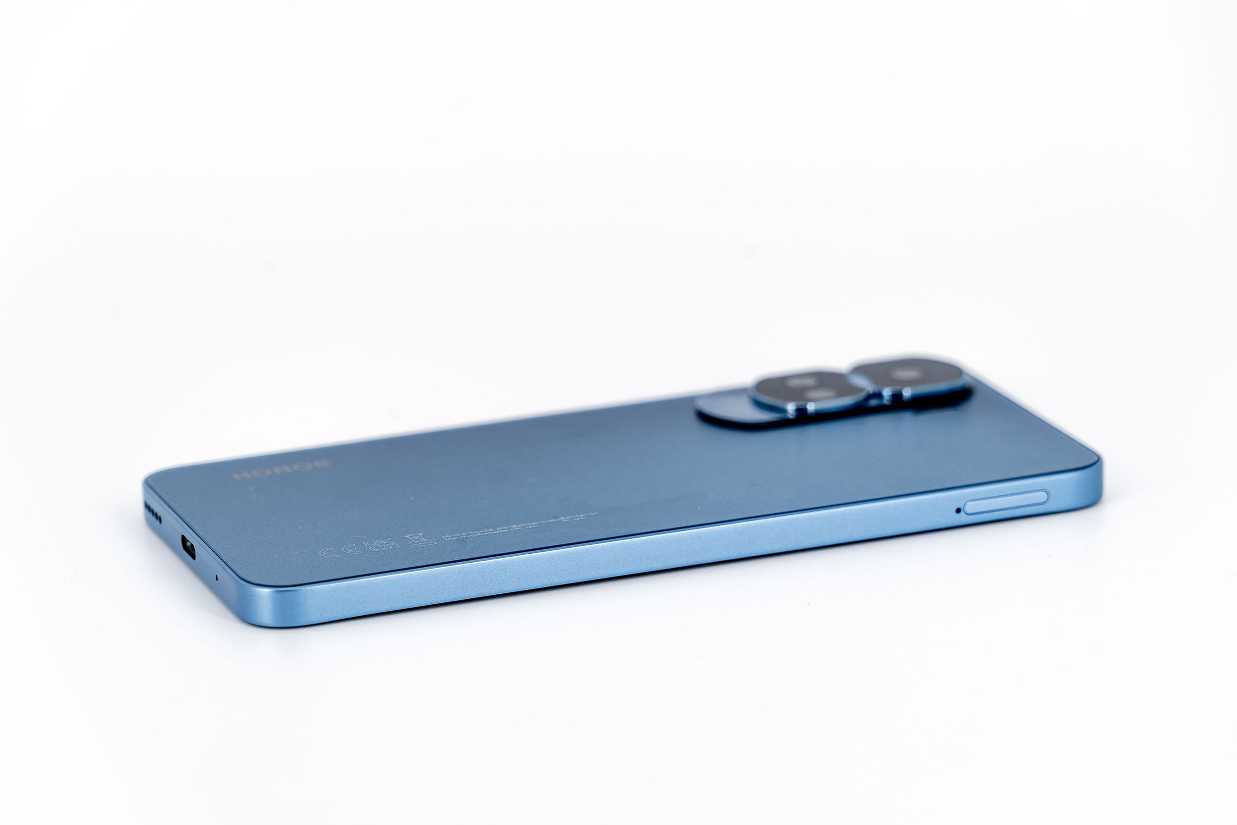 La finition c'est votre premier contact avec le téléphone, c'est ce qui va donner une première impression subjective et c'est assez important dans le choix d'un téléphone. Mon sentiment subjectif par rapport à la finition de ce Honor 90 Lite est plutôt positif. Je trouve que c'est un beau téléphone qui un côté biscuit double-face avec d'un côté l'écran et de l'autre une couleur bleu métallisée recouvrant également les bords du téléphones. Pour un smartphone à 240€, je trouve que le niveau de finition est supérieur au Redmi Note 12.