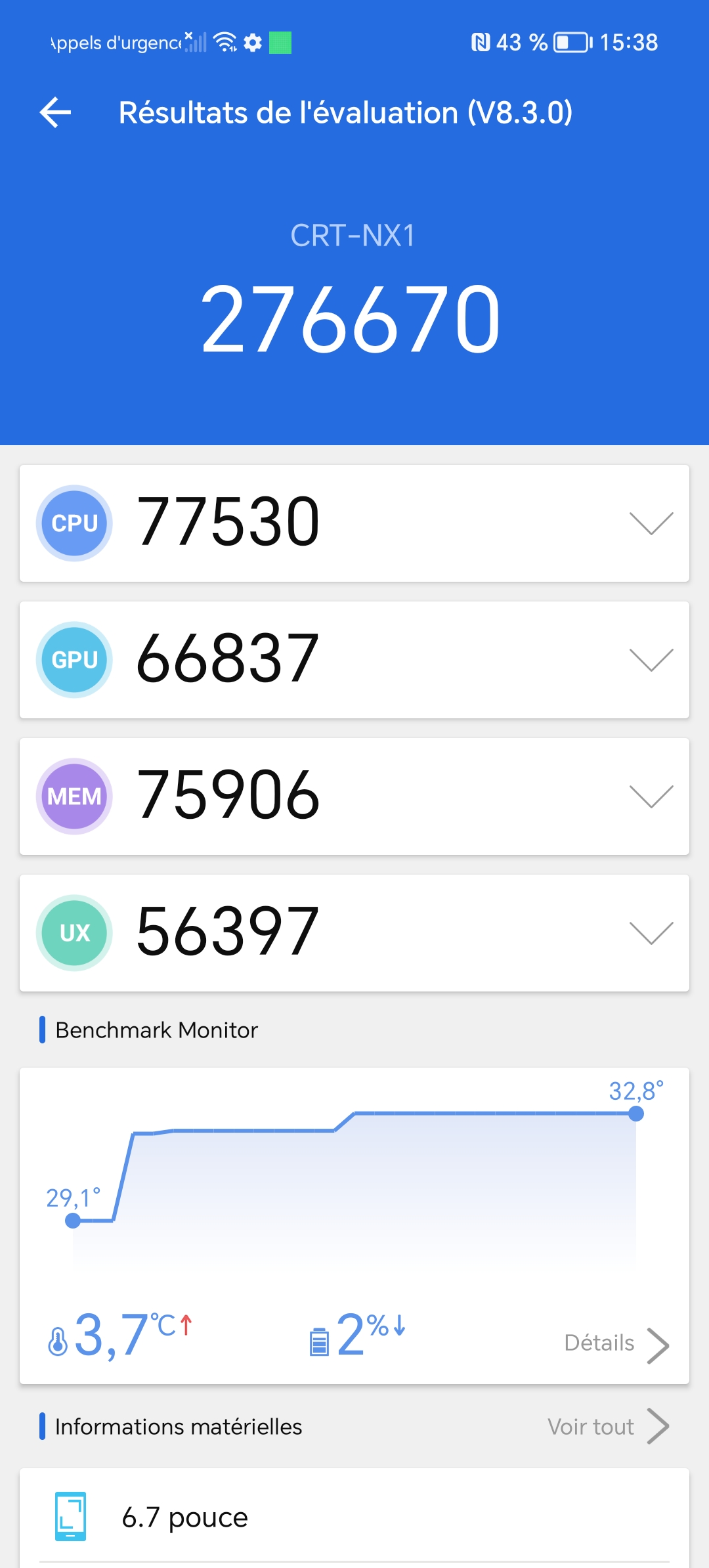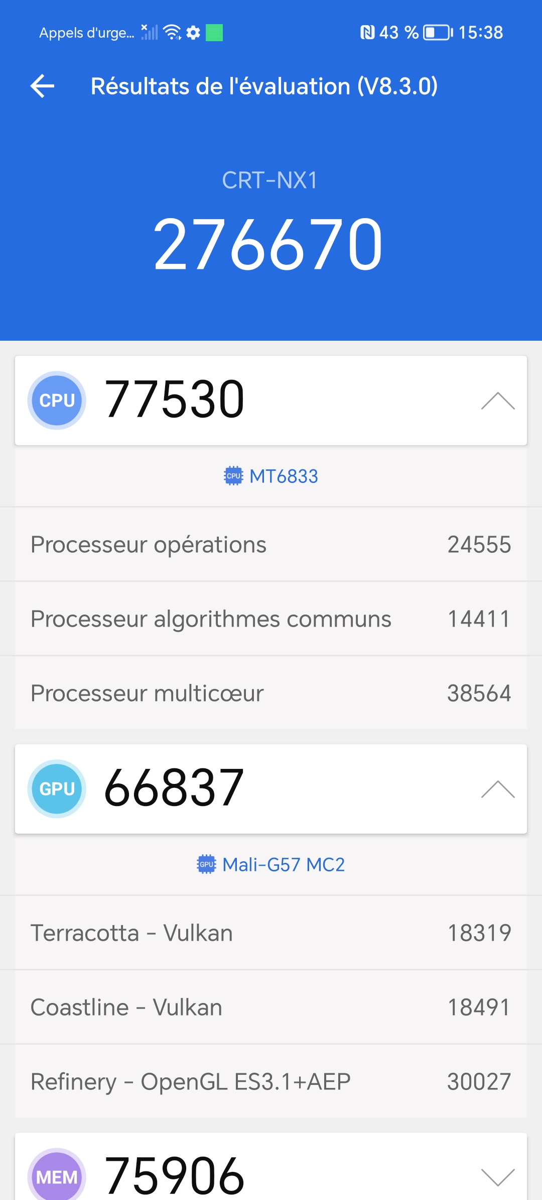 J'ai obtenu un score de 276670 points avec Antutu v8 et ce score vient confirmer ce que j'écrivais dans le paragraphe précédent. Il s'agit d'un niveau de performance similaire au Redmi Note 12 avec lequel j'avais obtenu un peu plus de 298 000 points. L'avantage de ce type de configuration c'est que le téléphone ne doit pas beaucoup chauffer et en principe, il ne devrait pas trop consommer de batterie.Gaming