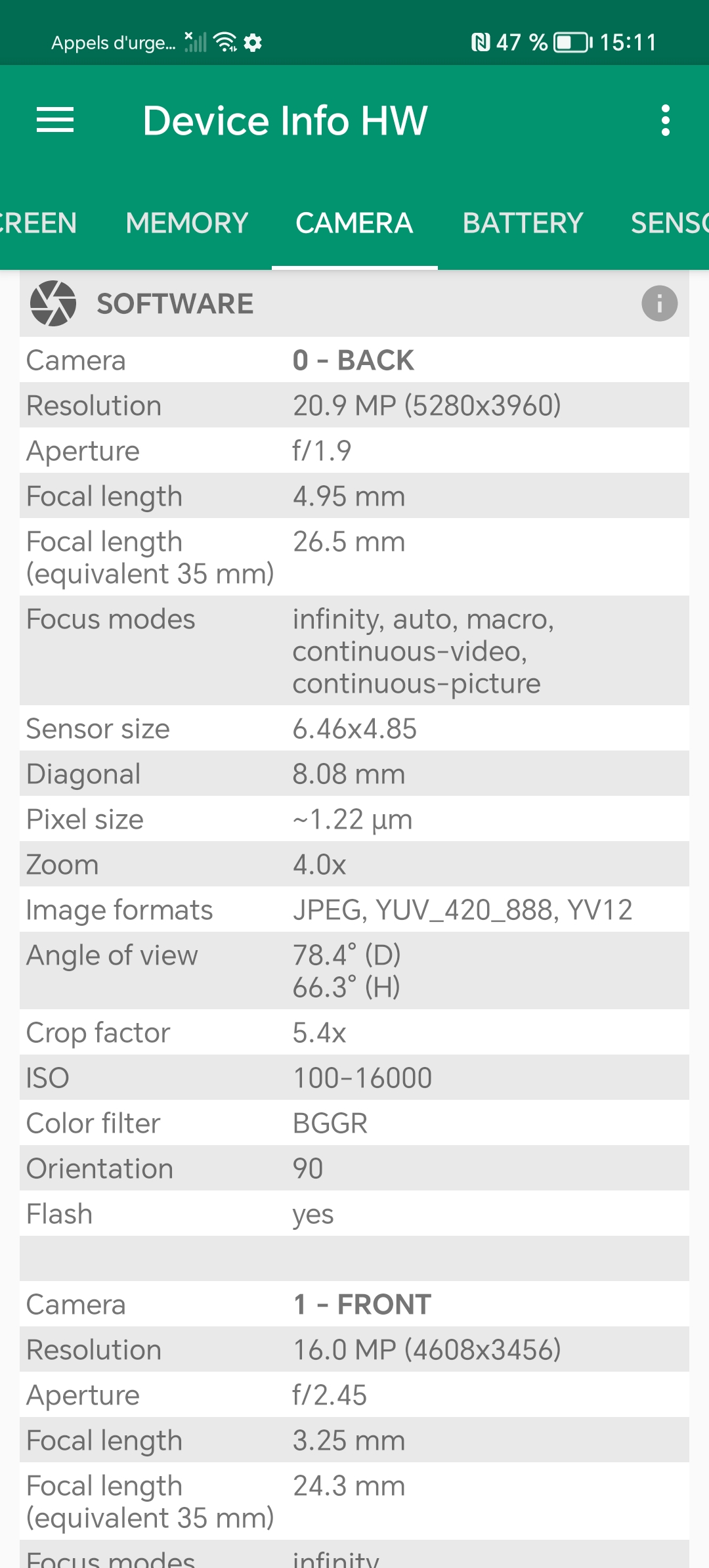 Le capteur ultra grand angle est également un Samsung mais c'est une curiosité car il est habituellement utilisé pour les selfies et ici je retrouve les mêmes caractéristiques pour un capteur à l'arrière du téléphone.