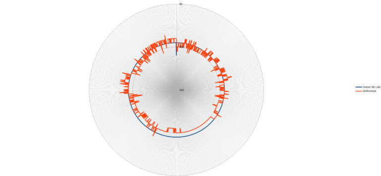 J'ai effectué 990 mesures pour évaluer la sensibilité au réseau 4G de ce téléphone et j'ai obtenu un signal moyen de -99 dBm là où ma sonde a obtenu un signal moyen de -99.45 dBm au même moment et même endroit. Les performances sont donc assez proches et cela veut dire que le Honor 90 Lite a une bonne sensibilité au réseau. Ce qui était particulièrement visible dans les mesures c'est la stabilité du signal sur le Honor alors que la sonde a connu de plus grosses déviations pendant la période de mesures.