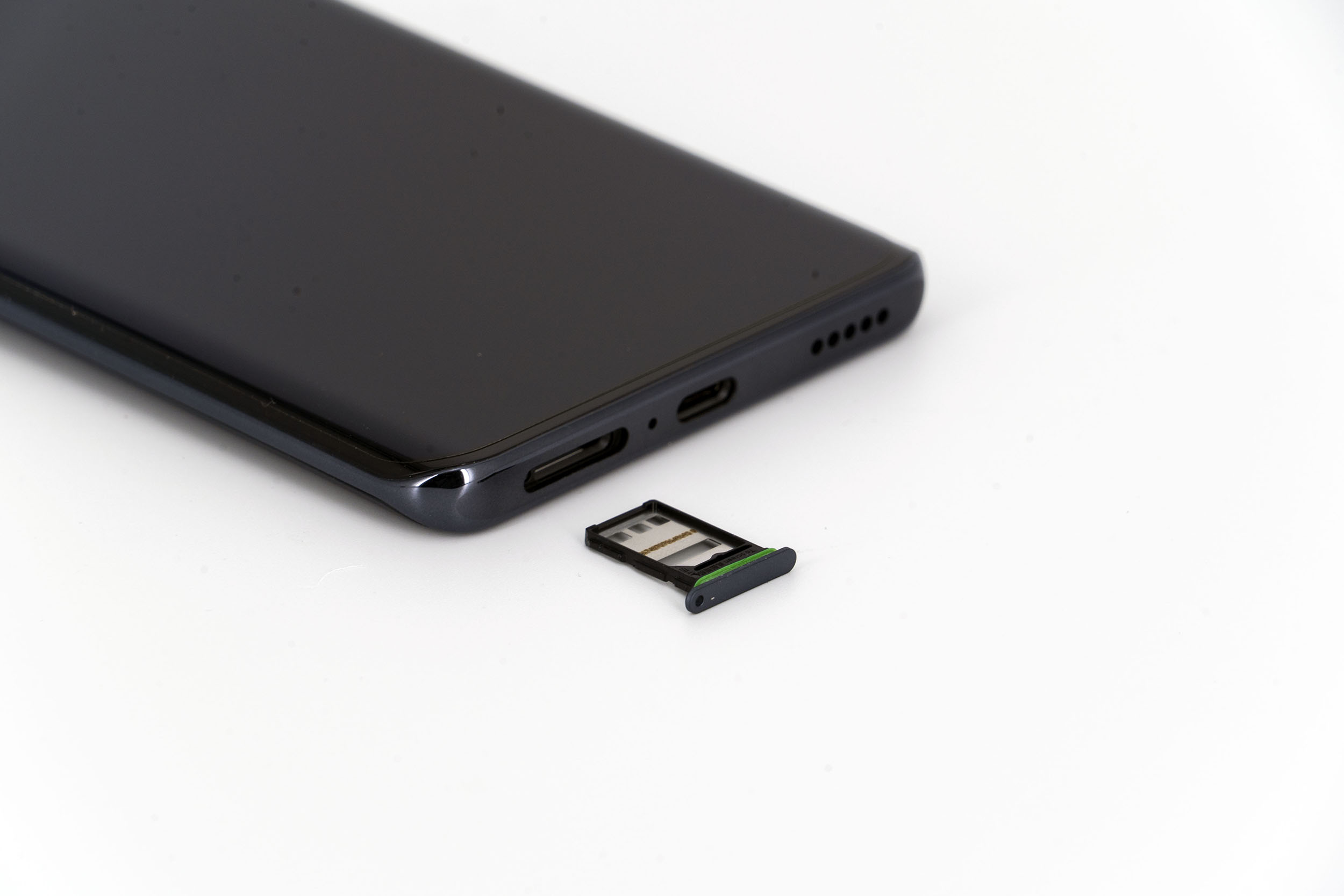 Sur la tranche inférieure du téléphone on retrouve le tiroir SIM en mode double face pouvant accueillir 2 cartes sim mais pas de carte mémoire, il y a également un port USB C, un capteur de son et un haut-parleur externe. Il n'y a pas d'autres sorties pour le son mais cela ne veut pas dire que le son ne sera pas diffusé en stéréo, il sortira sans doute par le haut-parleur d'écoute mais je reviendrai sur ce point plus loin dans ce test.