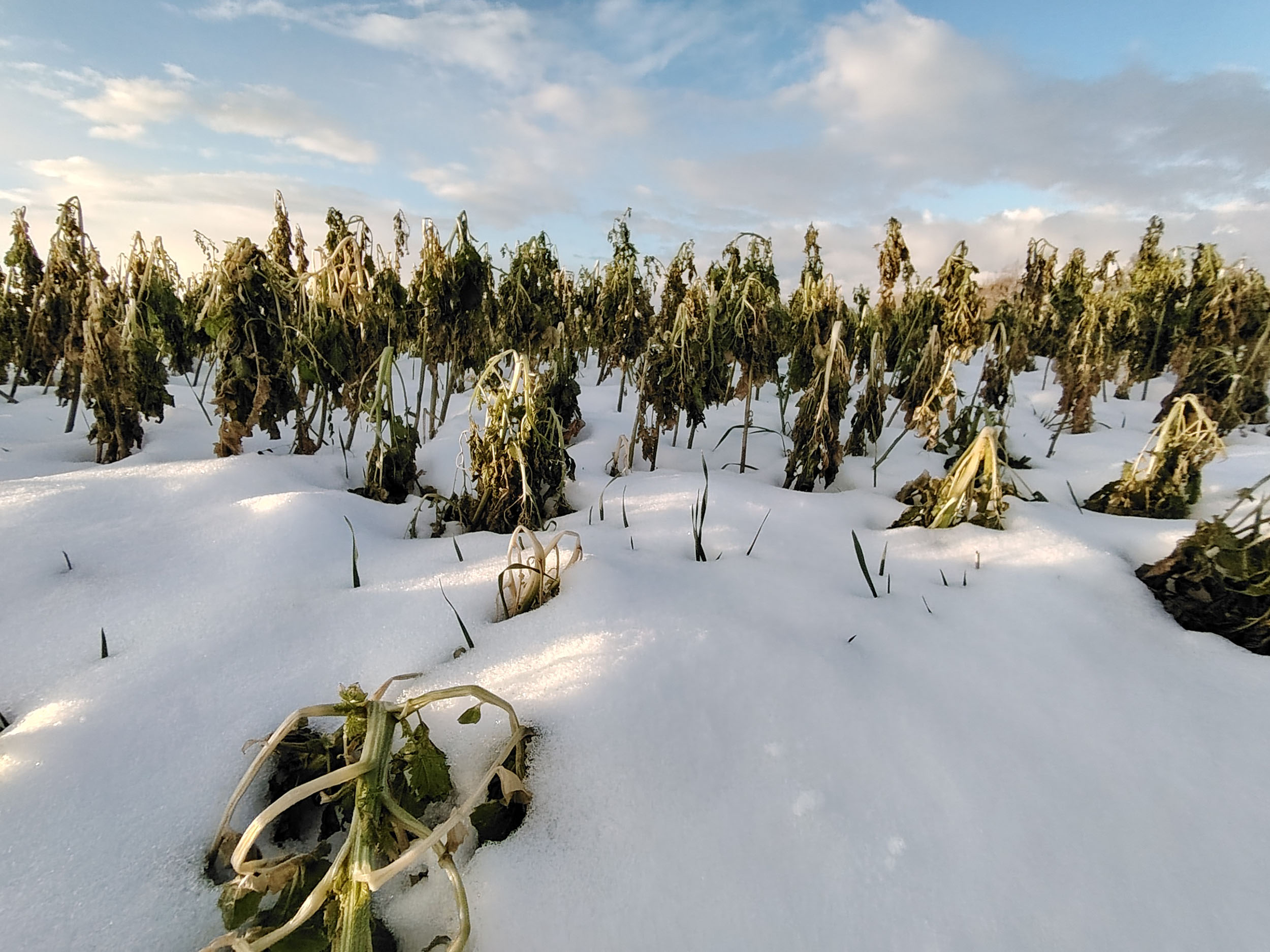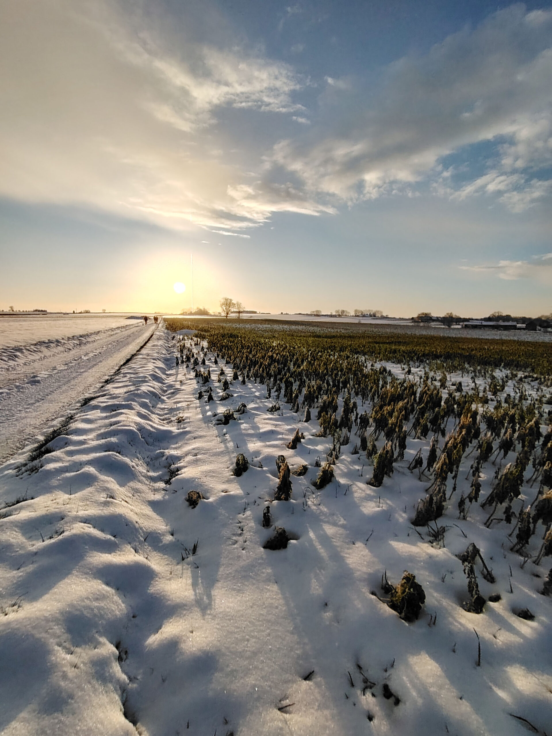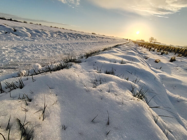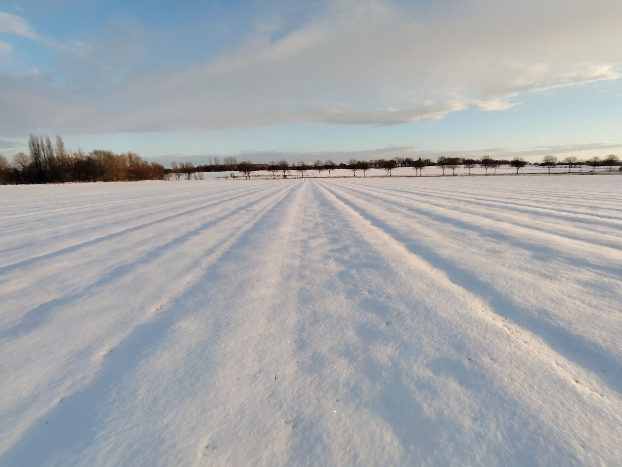 Pas facile de tester la qualité photo d'un téléphone quand la météo rend les déplacements en voiture plus difficile. Je n'ai pas pu faire des photos à l'endroit habituel mais ce n'est pas très grave finalement, les paysages sous la neige au coucher du soleil étaient tout aussi intéressants. Je trouve que cette photo est assez idyllique avec son ambiance chaleureuse et ses couleurs douces. En réalité, l'ambiance est moins chaude et je ne parle pas de la température. Si vous observez la neige, elle prend une coloration presque violette par endroit alors qu'elle devrait plutôt être orangée. Le soleil apparait comme une gigantesque boule de feu, c'est très joli mais en réalité le soleil n'occupe qu'une petite partie du ciel. Ceci montre que le téléphone n'a pas une plage dynamique suffisante pour couvrir toutes les différences de luminosité. L'utilisation du HDR permet de rémedier à ce problème, il y a quelques exemples dans la galerie photo ci-dessous.
