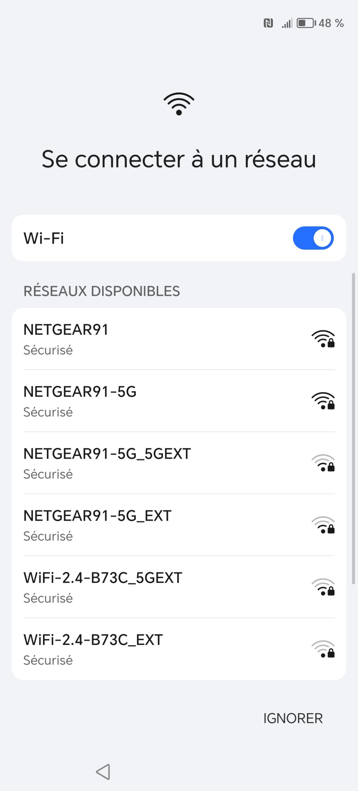 Pour tester la vitesse en Wifi, je me connecte à mon routeur en 2.4Ghz et 5Ghz (si disponible) et j'utilise l'application de Ookla pour mesurer la vitesse.