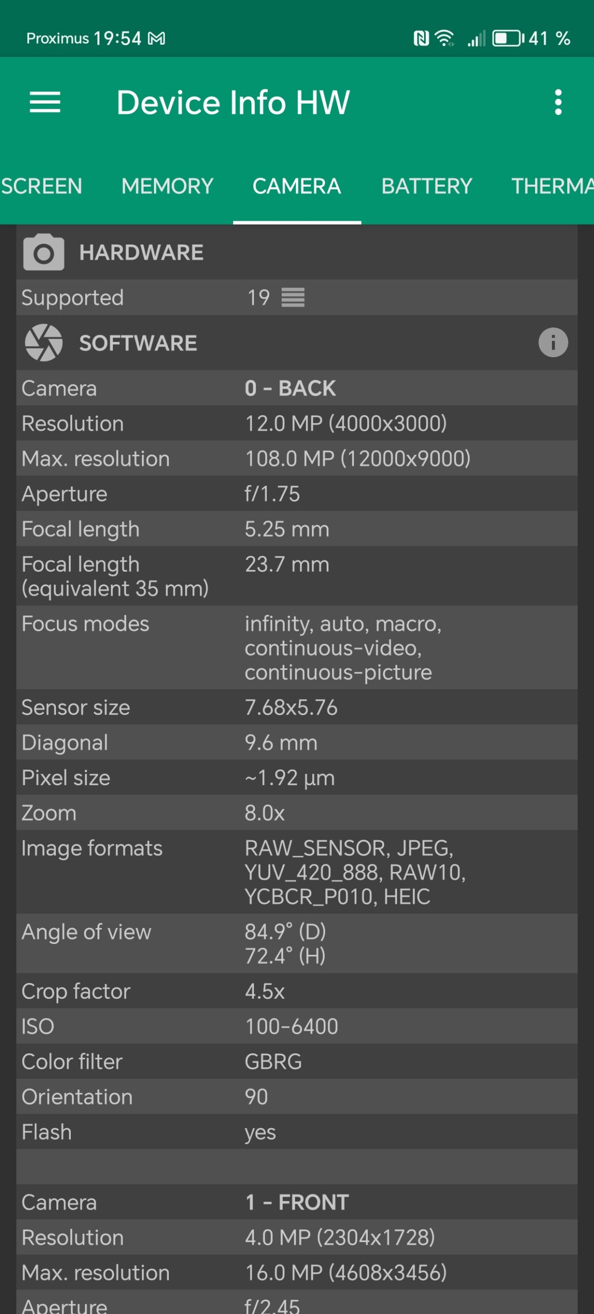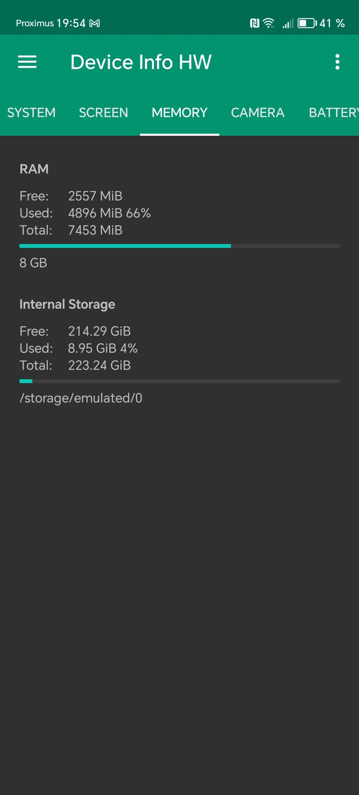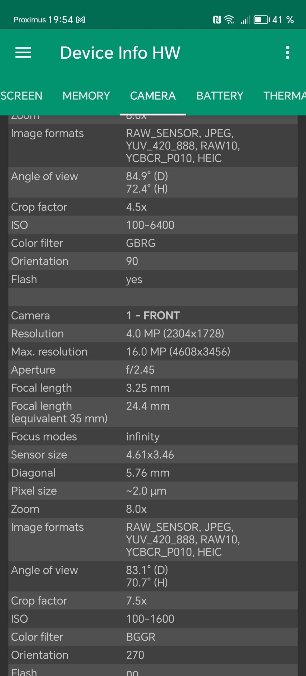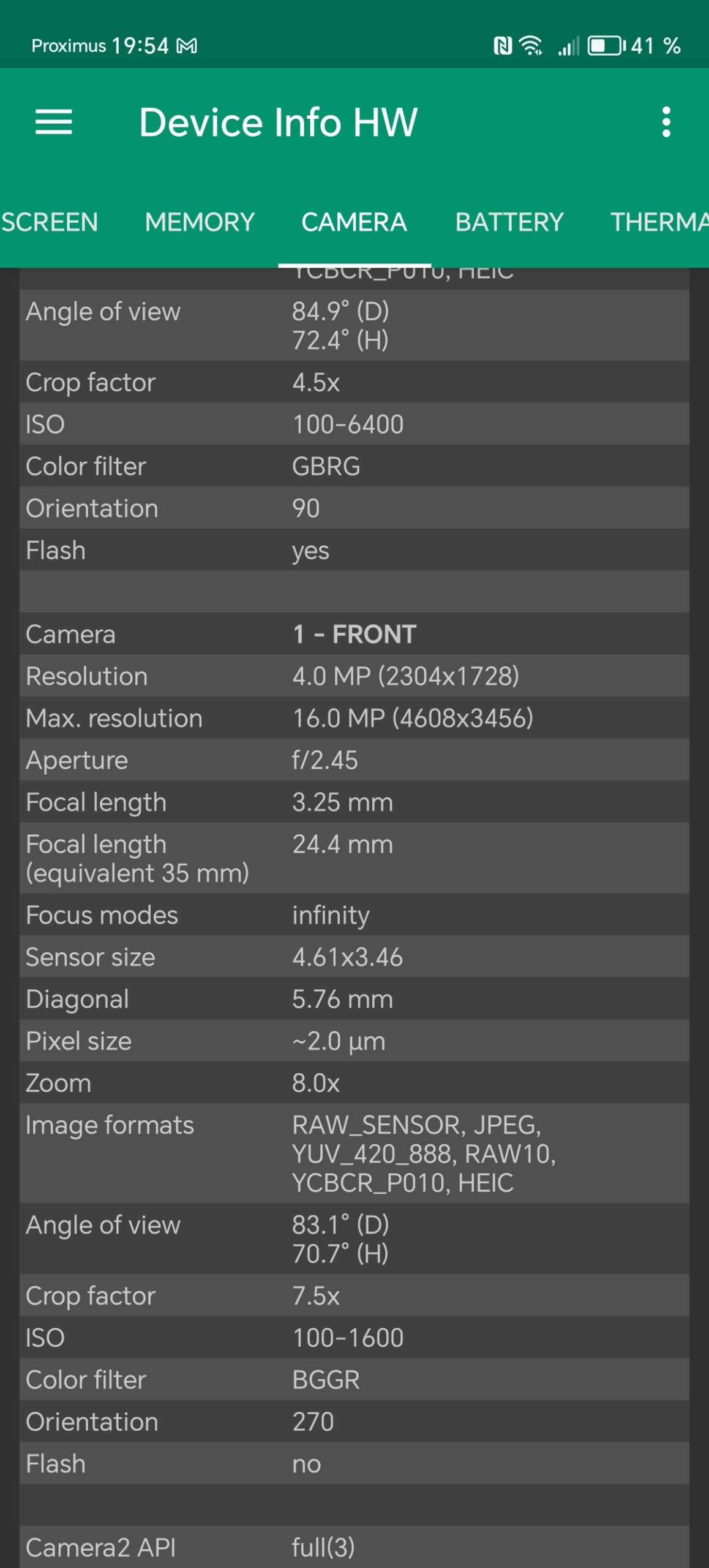 Les informations ci-dessous proviennent de l'application Device Info HW. L'application fournit des informations techniques détaillées sur le téléphone testé.Le Honor Magic6 Lite 5G que j'ai testé avait 8 Gb de mémoire vive et 256 Gb de mémoire de stockage. Ce téléphone utilise une architecture Snapdragon de chez Qualcomm sur laquelle je reviendrai dans le prochain paragraphe. J'ai fait des captures d'écran avec toutes les caractéristiques techniques ci-dessous et j'ai noté les points suivants:
