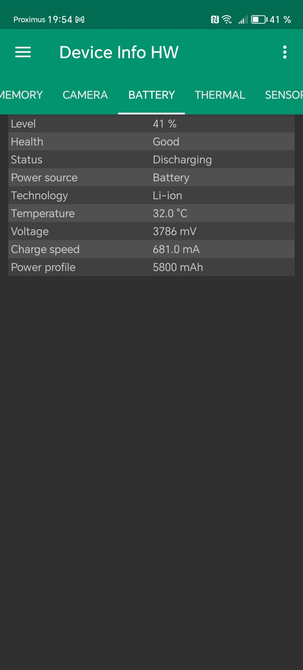 Je fais habituellement moins de mesures et si cette fois j'en ai plus, c'est tout simplement parce l'autonomie du téléphone a permis de faire plus de mesures. Je dépose le téléphone à côté de la sonde avec 100% de batterie, je mets la luminosité au minimum et je le laisse tourner jusqu'à ce qu'il tombe à 1% de batterie. Ce test réseau donne donc déjà une indication sur le niveau de batterie de ce téléphone.