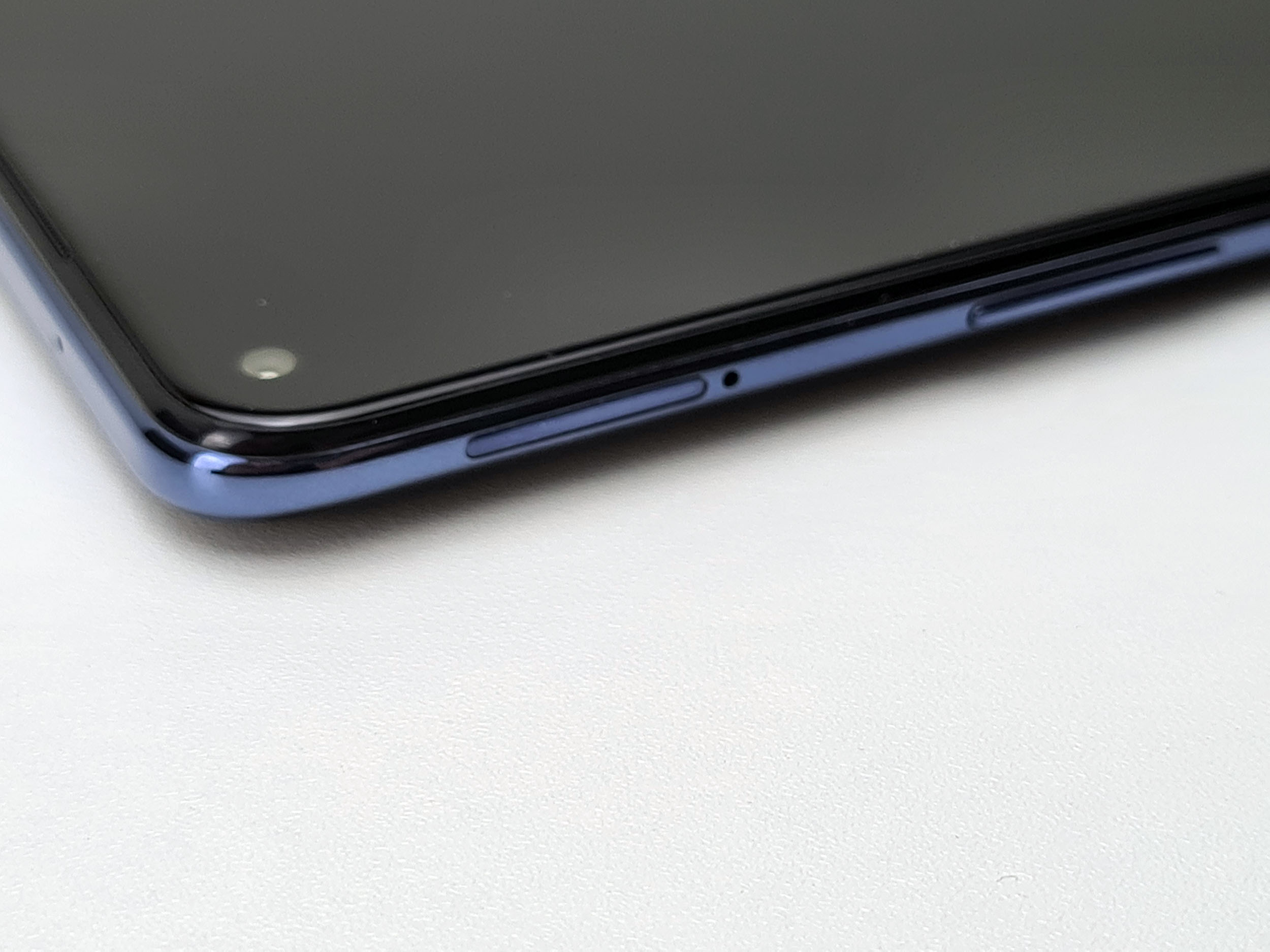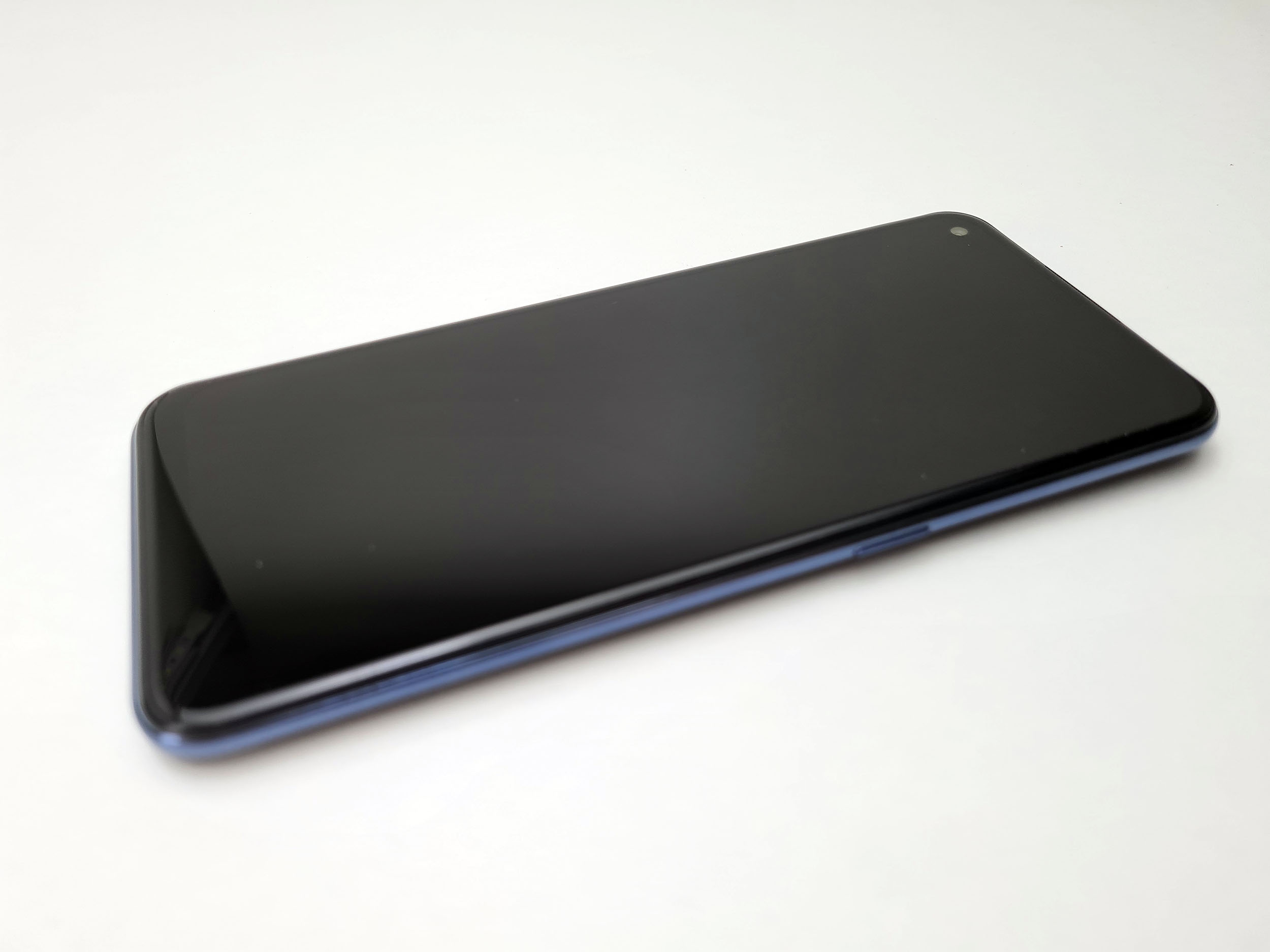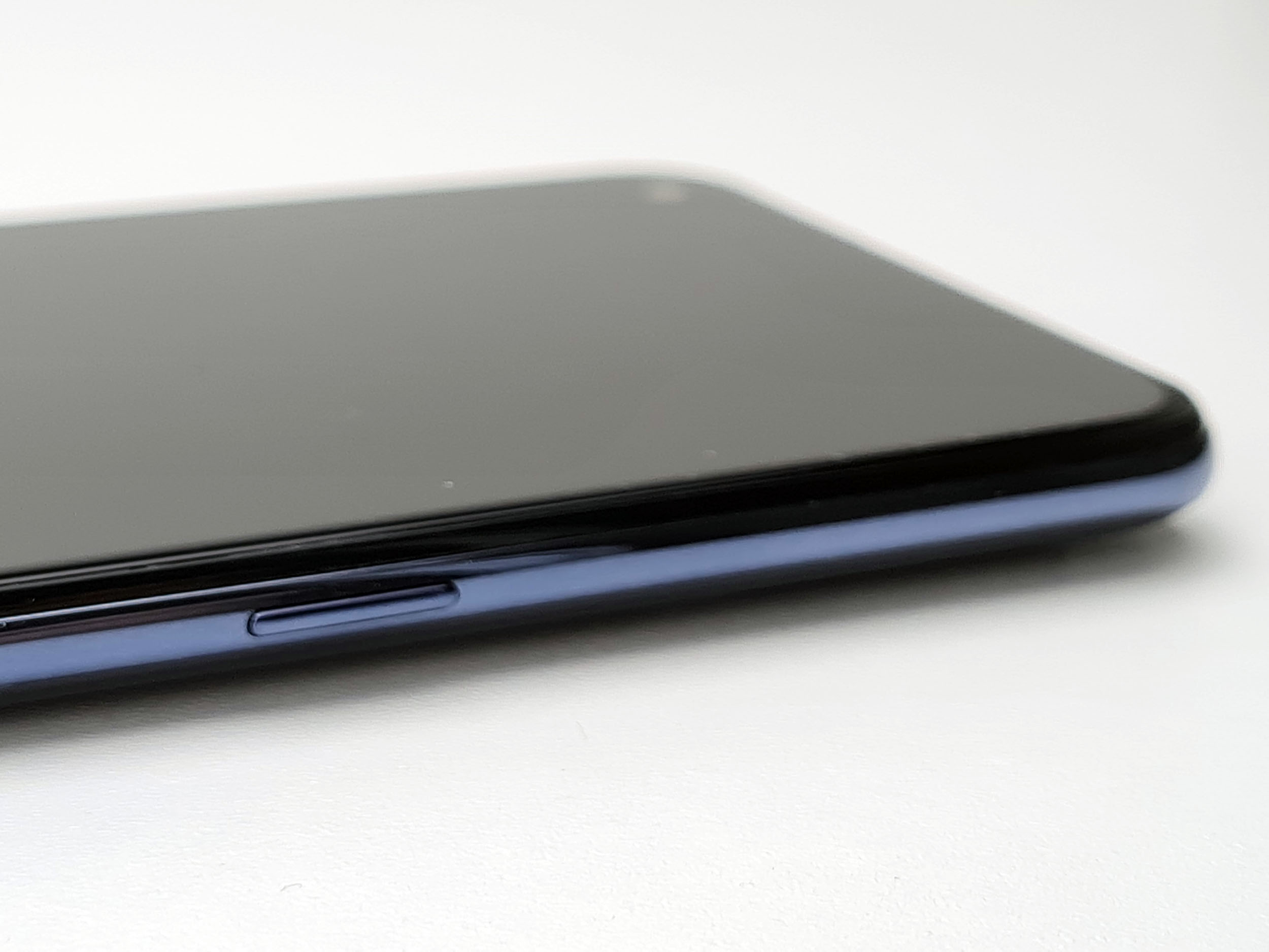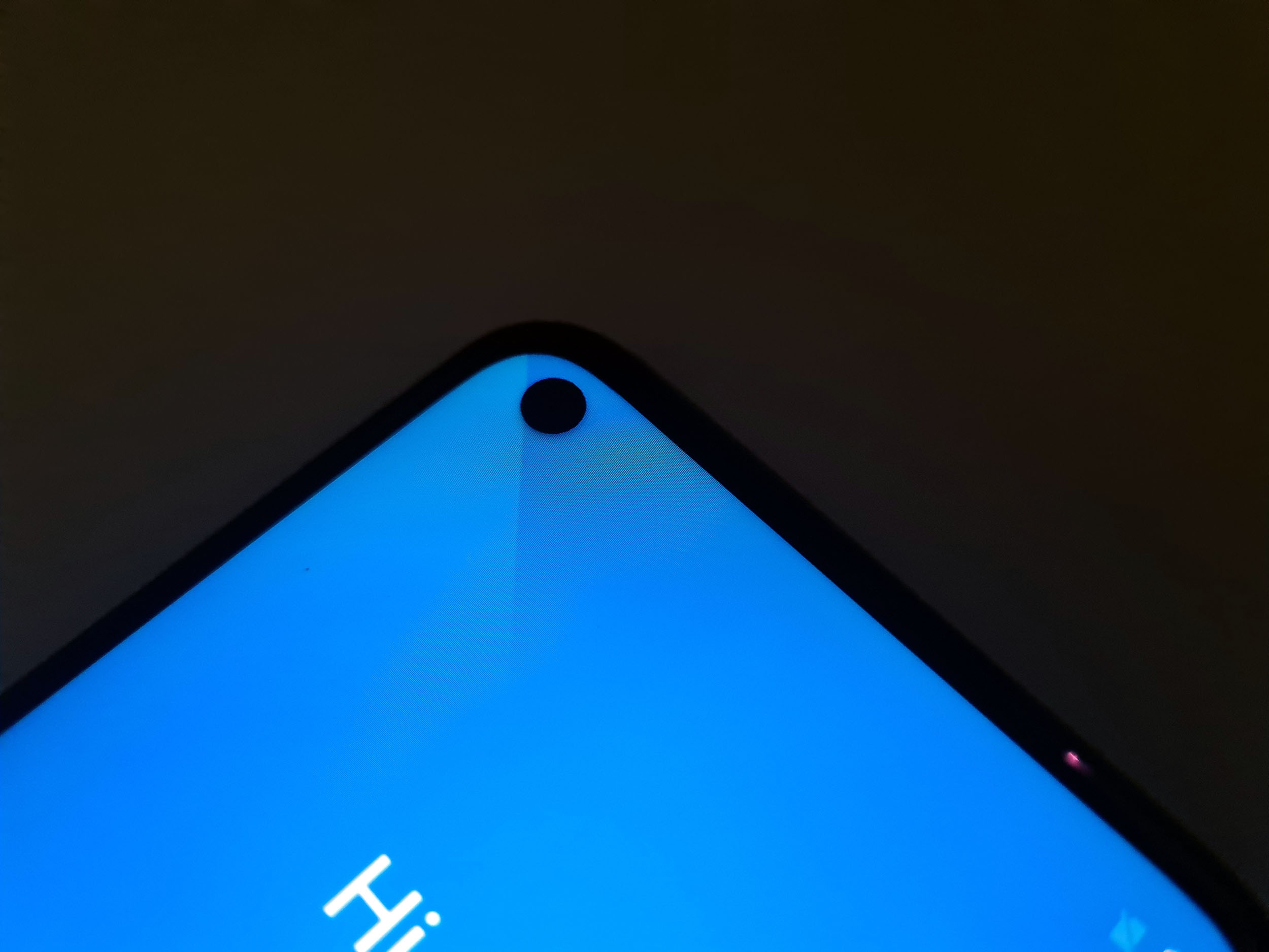 L'écran occupe une surface importante et n'est interrompu que par un poinçon en haut à gauche. Les bordures sont visibles et celle du bas est d'ailleurs assez épaisse.