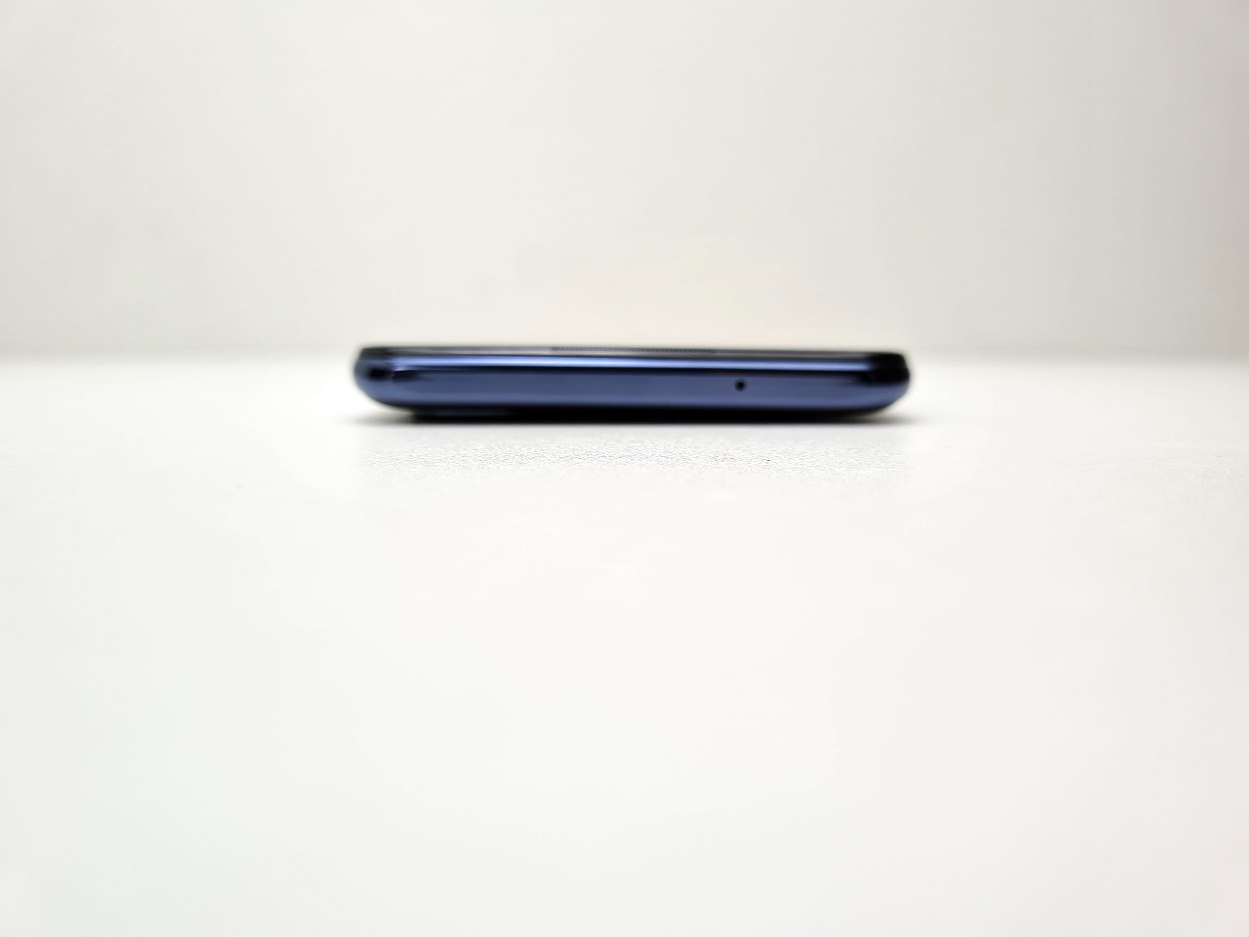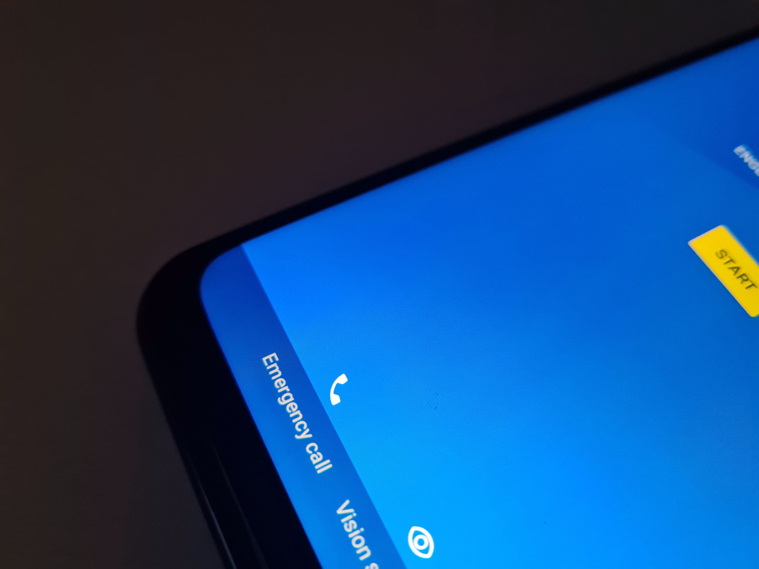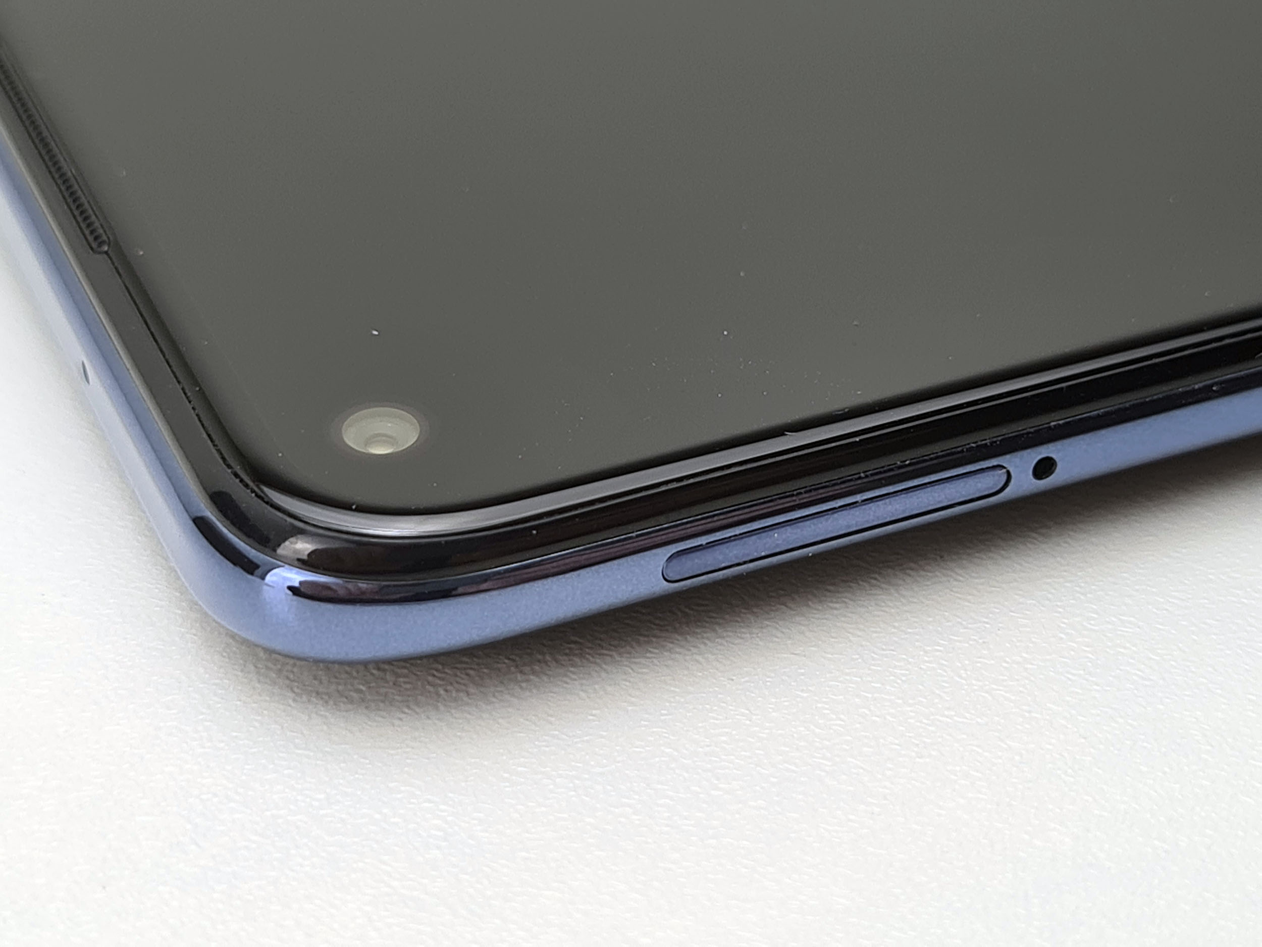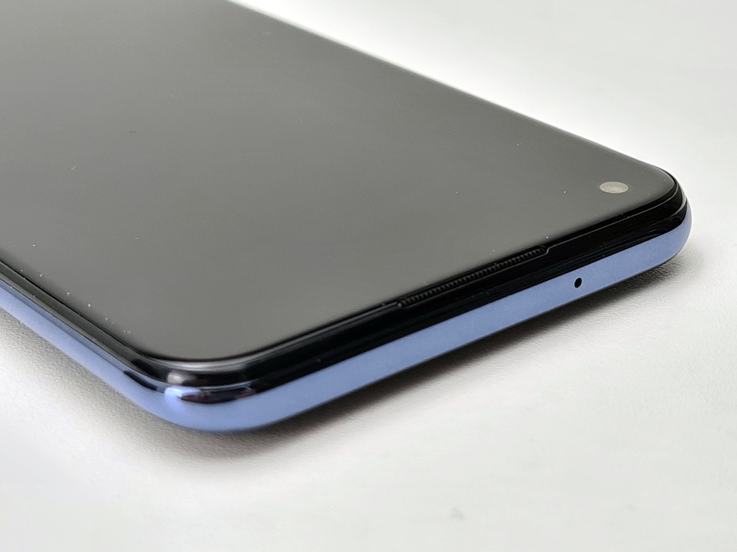 L'écran occupe une surface importante et n'est interrompu que par un poinçon en haut à gauche. Les bordures sont visibles et celle du bas est d'ailleurs assez épaisse.