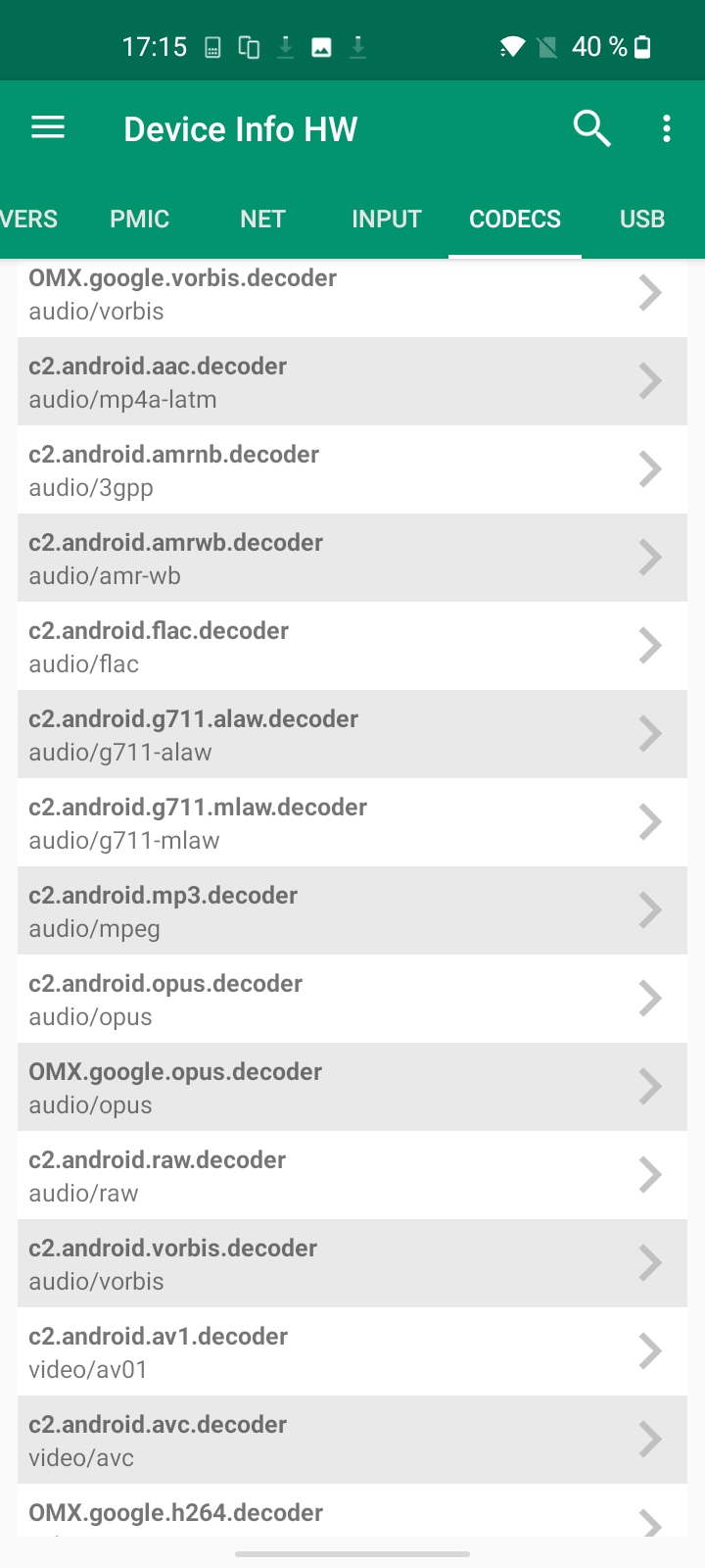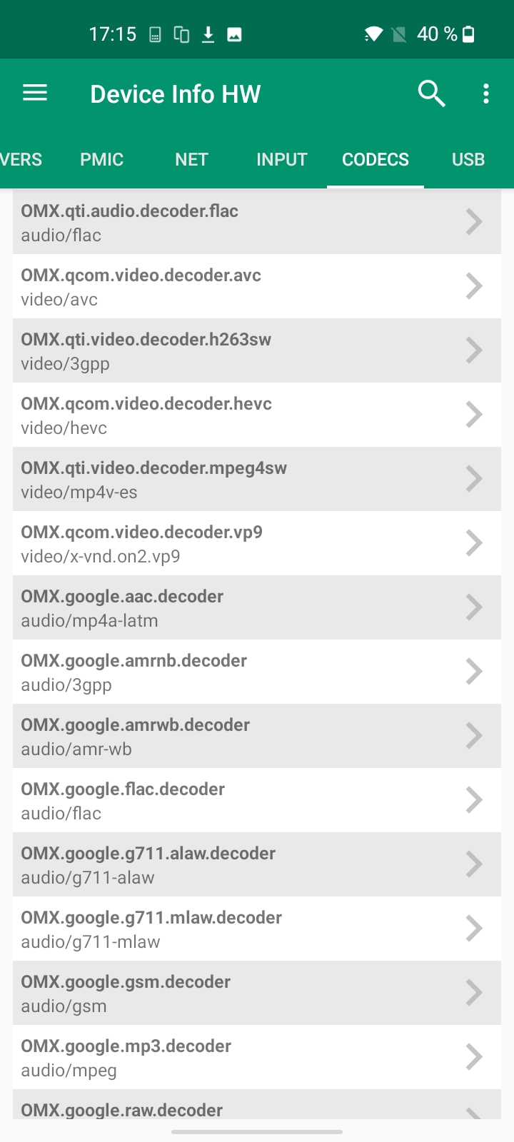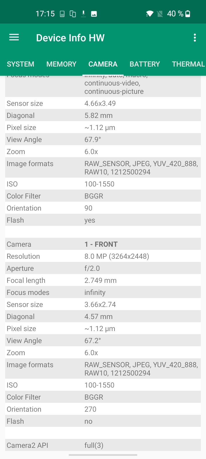 Les informations ci-dessous proviennent de l'application Device Info HW. L'application fournit des informations techniques détaillées sur le téléphone testé.J'ai acheté la version 4Gb / 64 Gb du OnePlus Nord N100, il n'existait d'ailleurs pas d'autres versions au même d'écrire ce test. J'ai fait une capture d'écran des spécifications techniques ci-dessous. Le chipset wifi est le même que sur la gamme Redmi Note 10. Au niveau son, c'est un chipset que je n'ai pas encore testé. Je n'ai pas trouvé d'informations supplémentaires sur l'appareil photo non plus.