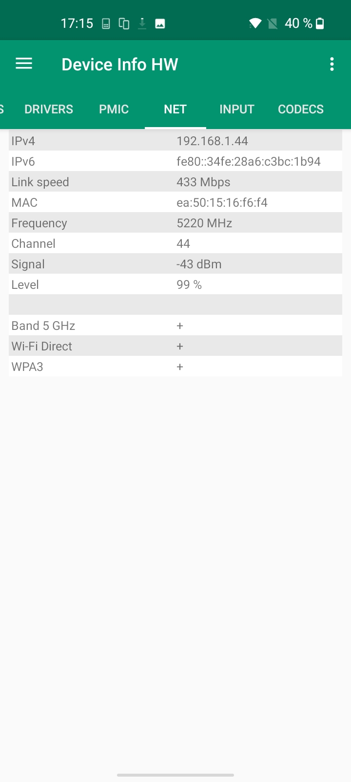 Le OnePlus Nord N100 utilise le même chipset pour le wifi que le Redmi Note 10 et Redmi Note 10 Pro, le résultat de mes mesures est donc très similaire. J'ai obtenu -15 dBm à proximité de mon routeur et -67 dBm à distance, ce sont des résultats dans la moyenne supérieure de mes mesures.