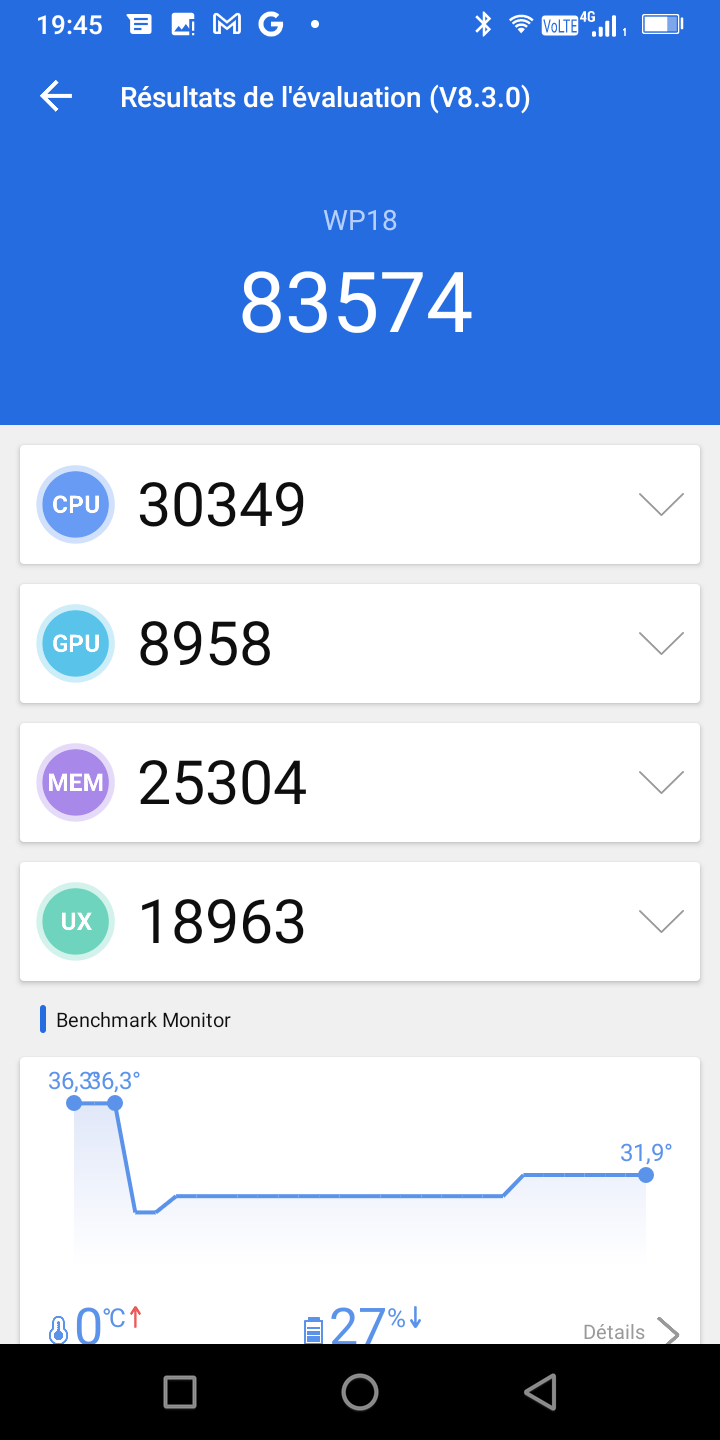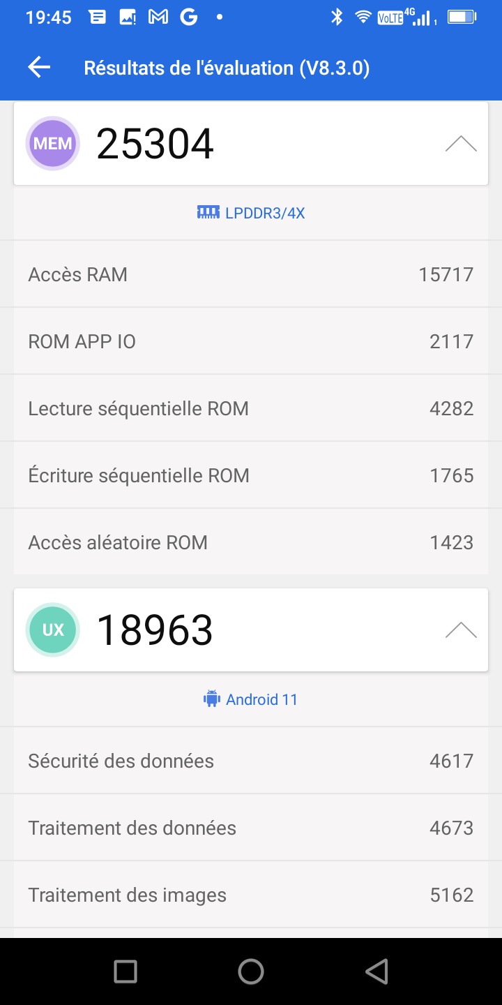 L'écran est un écran d'une résolution de 1440x720p, la densité de pixel est donc plus basse que la moyenne et lorsque j'incline le téléphone je vois des variations dans l'intensité du blanc. Cette variation pourrait selon moi provenir de la protection qui recouvre l'écran. La batterie c'est clairement l'élément fort de ce téléphone car avec une batterie de 12500 mAh, c'est la plus grosse batterie que j'ai testée jusqu'à présent.