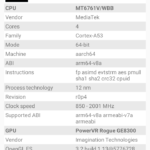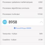 Pour le GPU c'est un peu la même chose, j'ai ici un PowerVR Rogue GE8300, c'est un GPU d'entrée de gamme qui n'est pas conçu pour jouer. Vous pourrez jouer aux jeux Android simples sans problèmes mais les jeux plus avancés seront dégradés au niveau graphisme et fluidité.