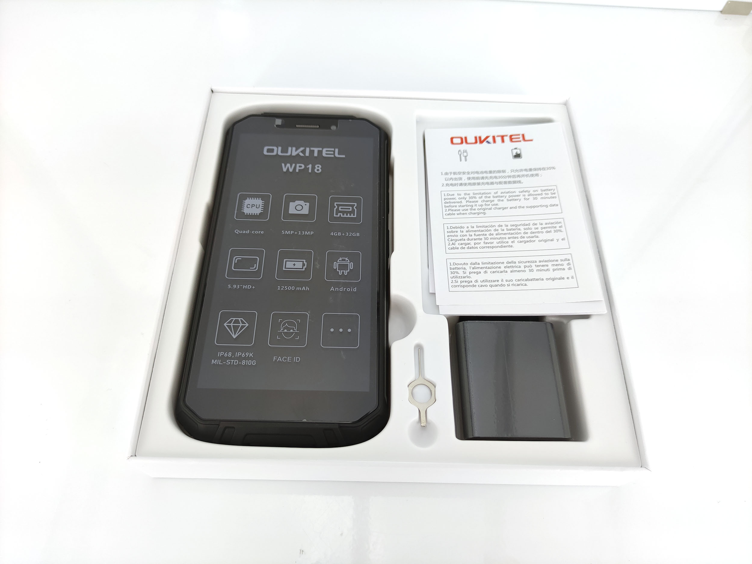 Les téléphones du type robuste ne sont pas des objets à la mode, ils ne sont pas conçus pour ça, il faut plutôt les voir comme un outil de travail. Ce type de téléphone offre souvent une expérience dégradée par rapport à un smartphone traditionnel mais certaines marques parviennent à produire des téléphones renforcés sans trop de contrainte sur les fonctionnalités du téléphone.La grande force de ce Oukitel WP18 c'est sa batterie de 12500 mAh, c'est la plus grosse batterie que j'ai testée jusqu'à présent. A côté de ça, le Oukitel WP18 offre une protection contre la poussière IP69 et étanchéité IP68 et peut résister à une chute de 1.5m. Ce sont des arguments que d'autres marques ont également utilisés mais ce qui fera peut être la différence c'est le prix car ce Oukitel est disponible pour un peu plus de 100€. A ce prix là il ne faut pas s'attendre à une machine de performance mais cela rend l'univers des smartphones robustes plus accessible.