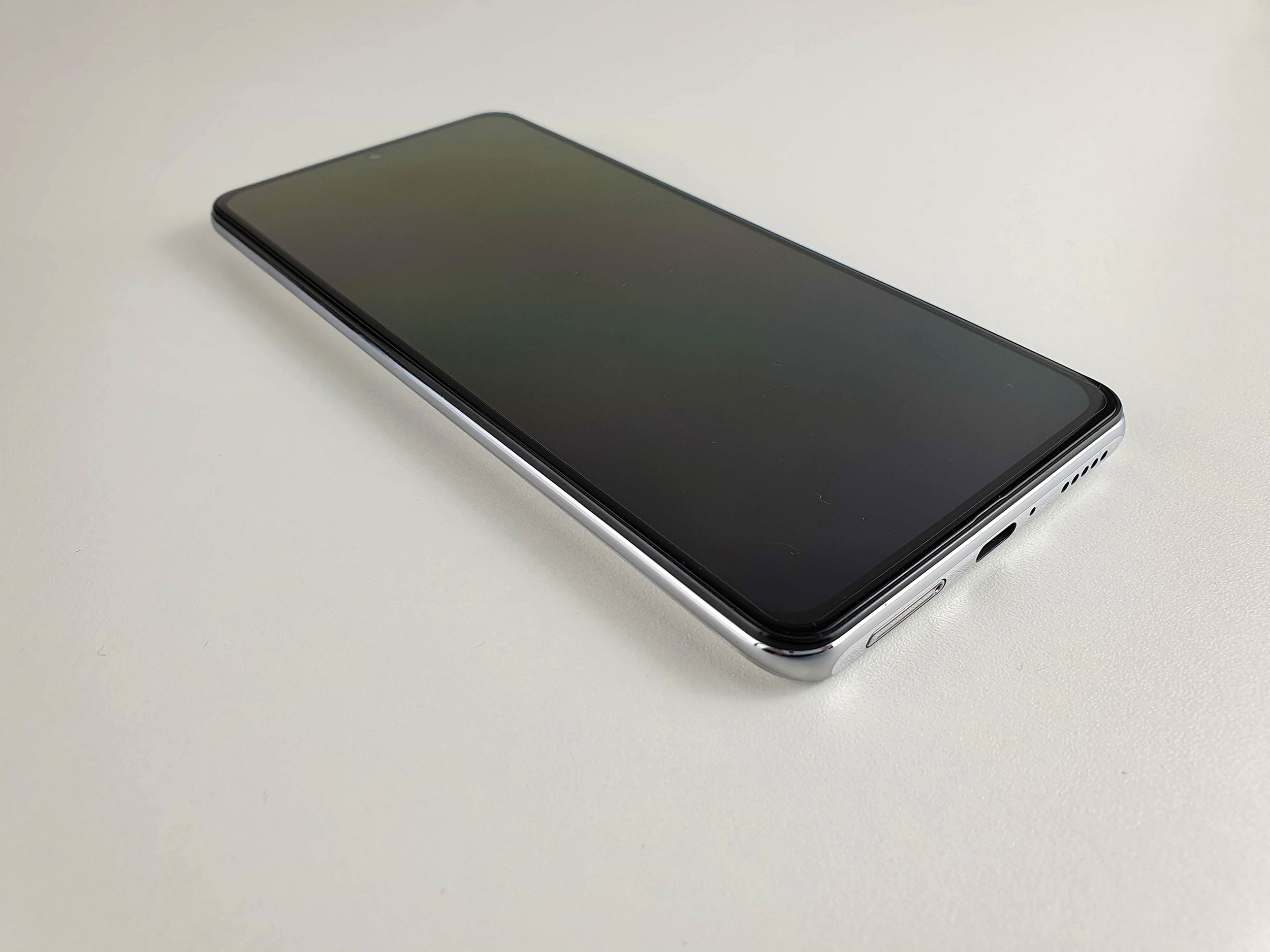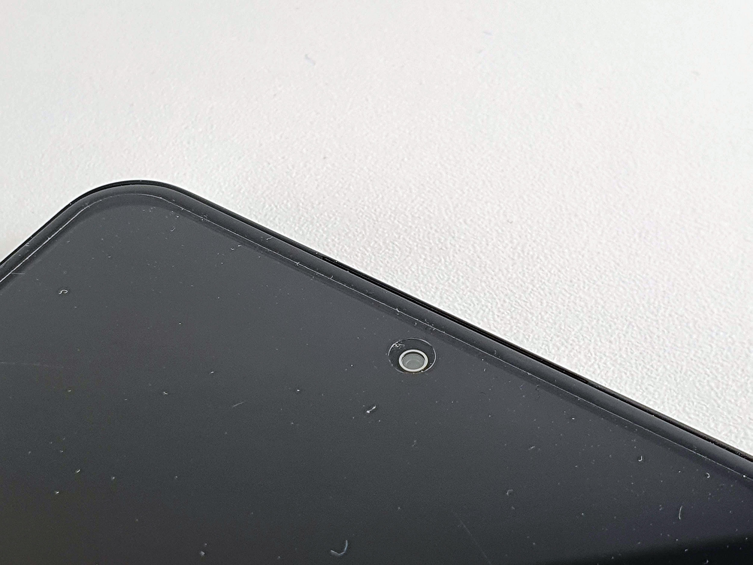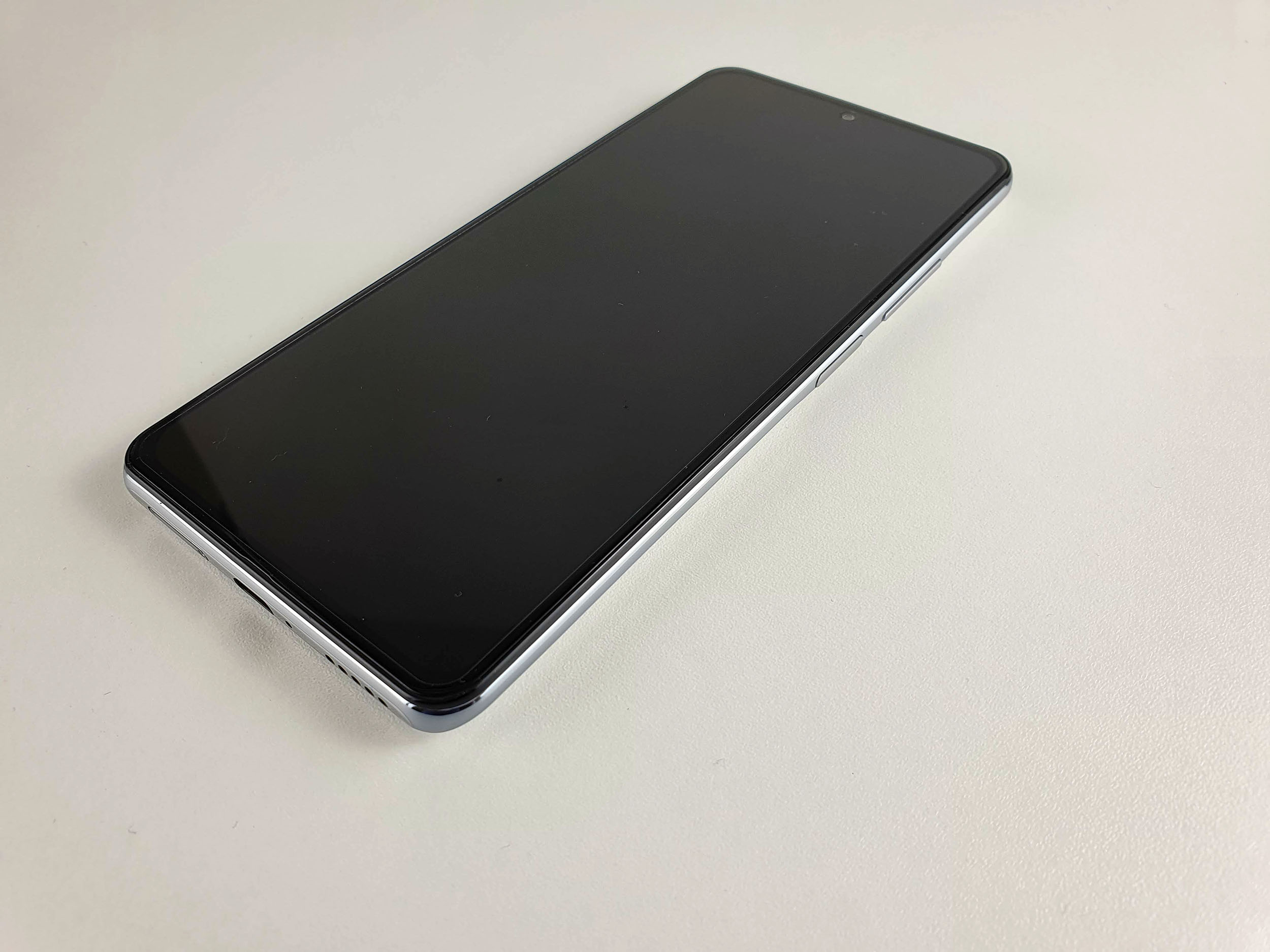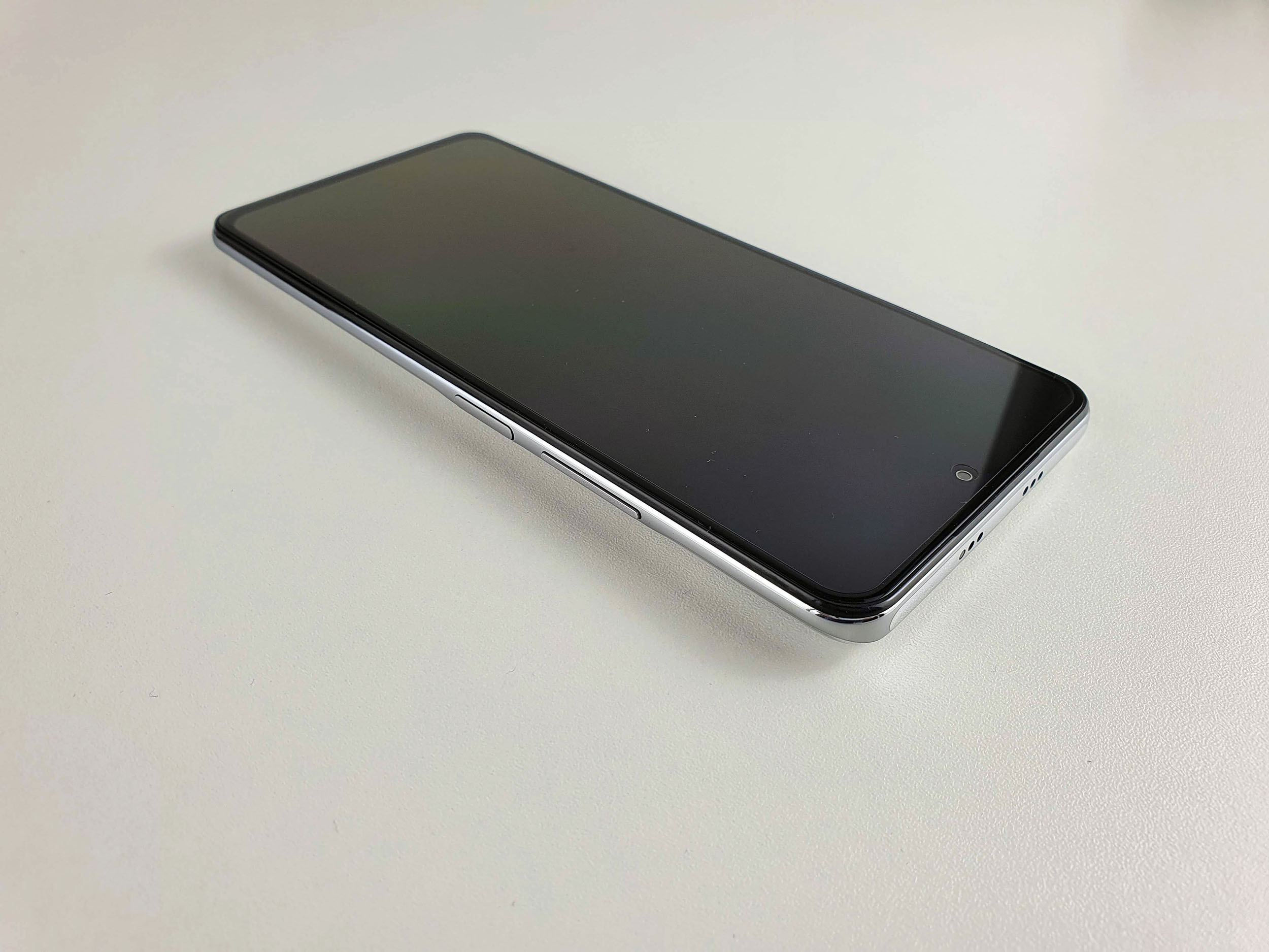 L'écran occupe 85% de la façade avant du téléphone, il n'est interrompu que par un petit poinçon pour accueillir l'appareil photo frontal, ce poinçon est très discret. Les bordures sont très fines en haut du téléphone et un peu plus épaisse en bas mais plus fine que les autres modèles de la marque.