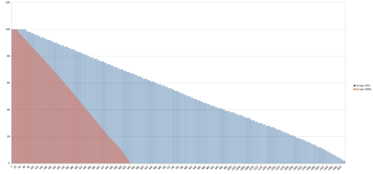 Le graphe ci-dessous montre l'écart énorme de l'autonomie en fonction de la luminosité de l'écran: