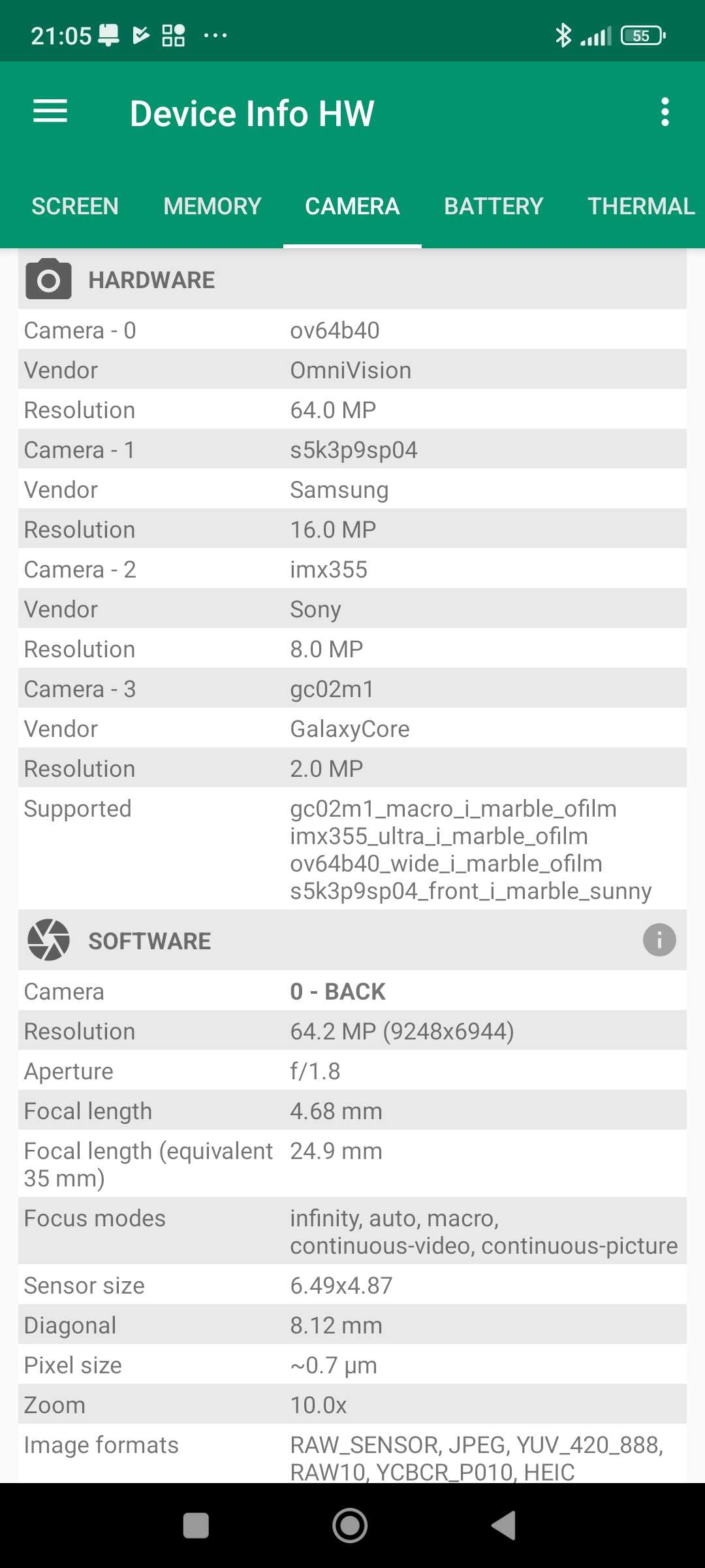 Voici un autre exemple avec le Unihertz Luna qui utilise un capteur Samsung:
