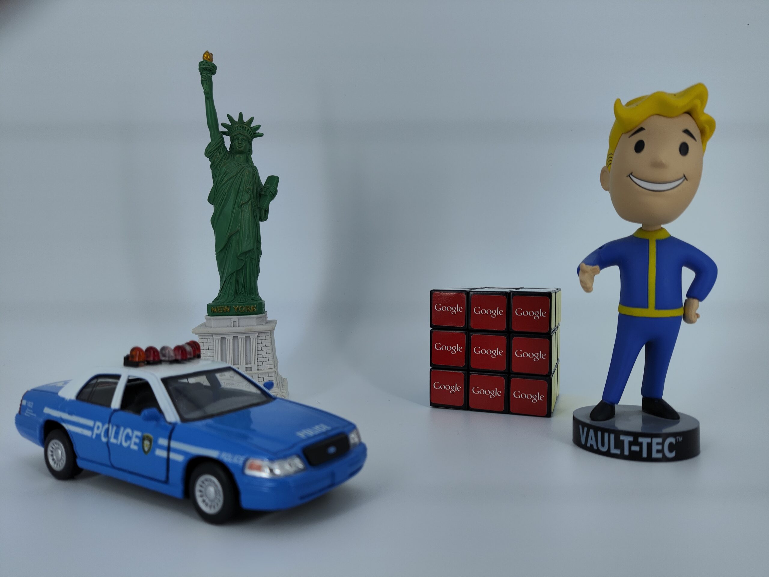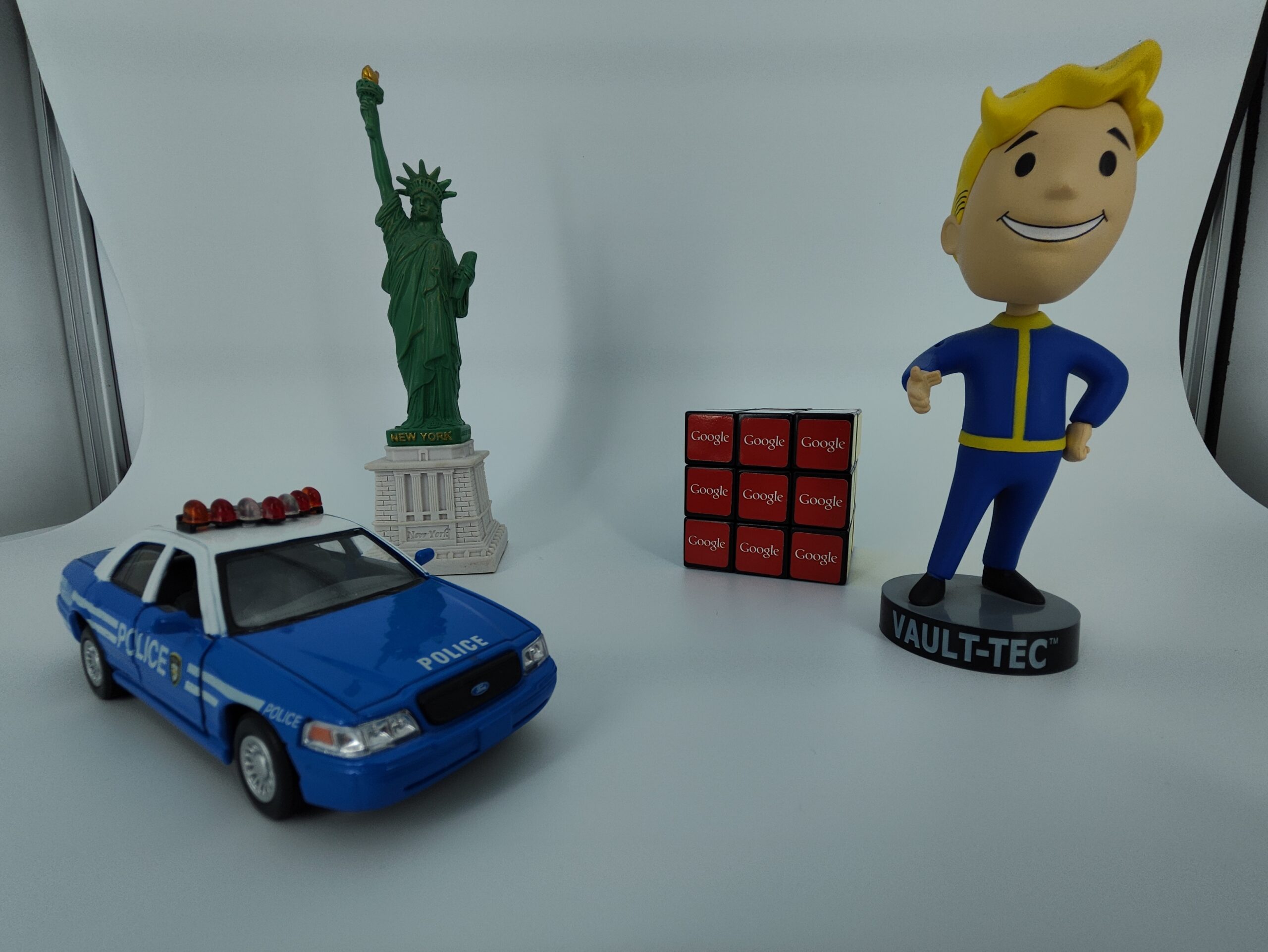Qualité photo en intérieur (studio)Le test en studio est réalisé dans les mêmes conditions pour pouvoir comparer les résultats sur base égale. Je calibre mon éclairage à chaque test pour obtenir la même luminosité et une température des couleurs identiques. Ce test permet une analyse préliminaire des qualités techniques d'un appareil photo. La plupart des téléphones ratent ce test, il faut donc également lire le résultat des autres tests dans les paragraphes qui vont suivre.