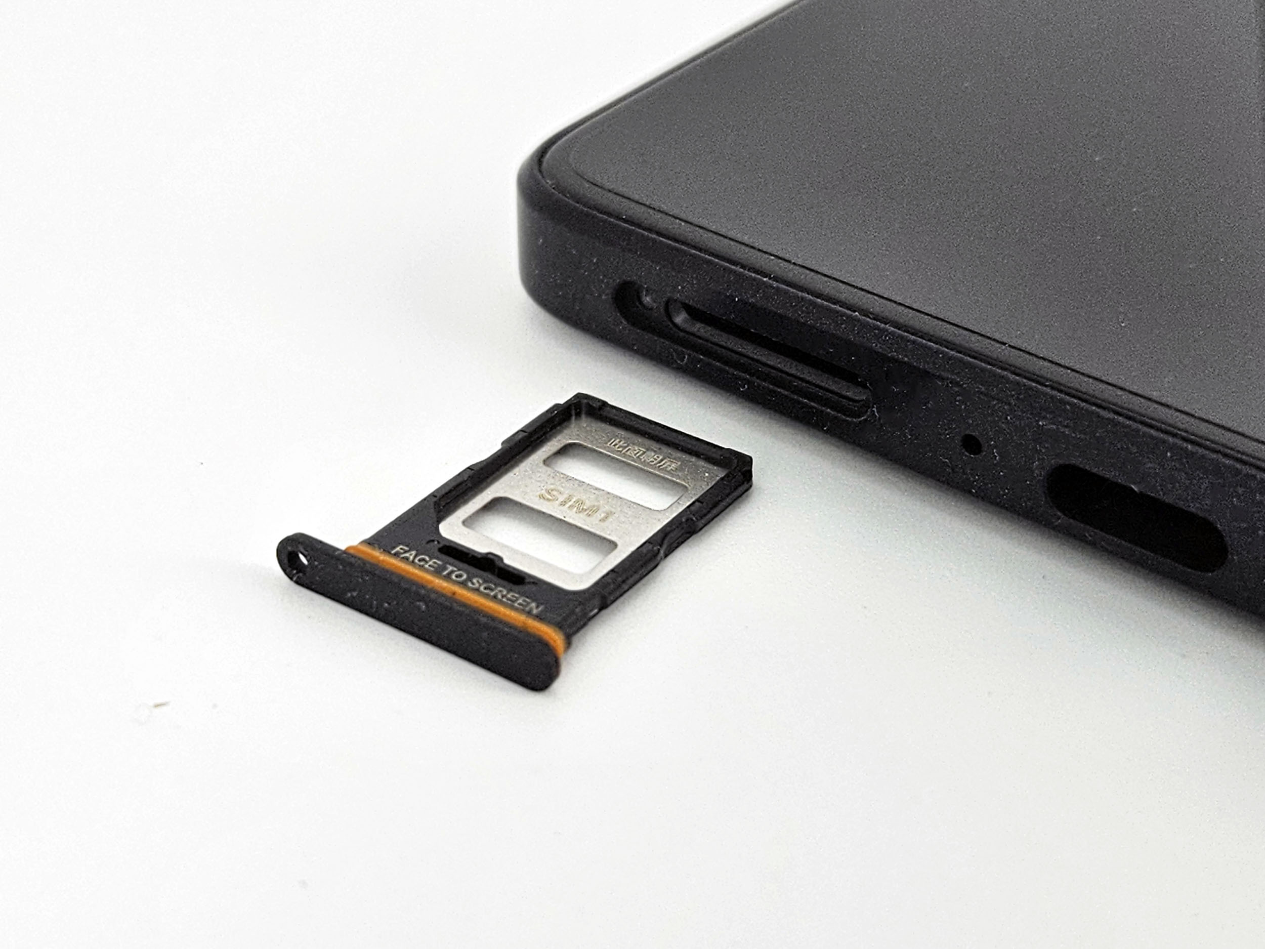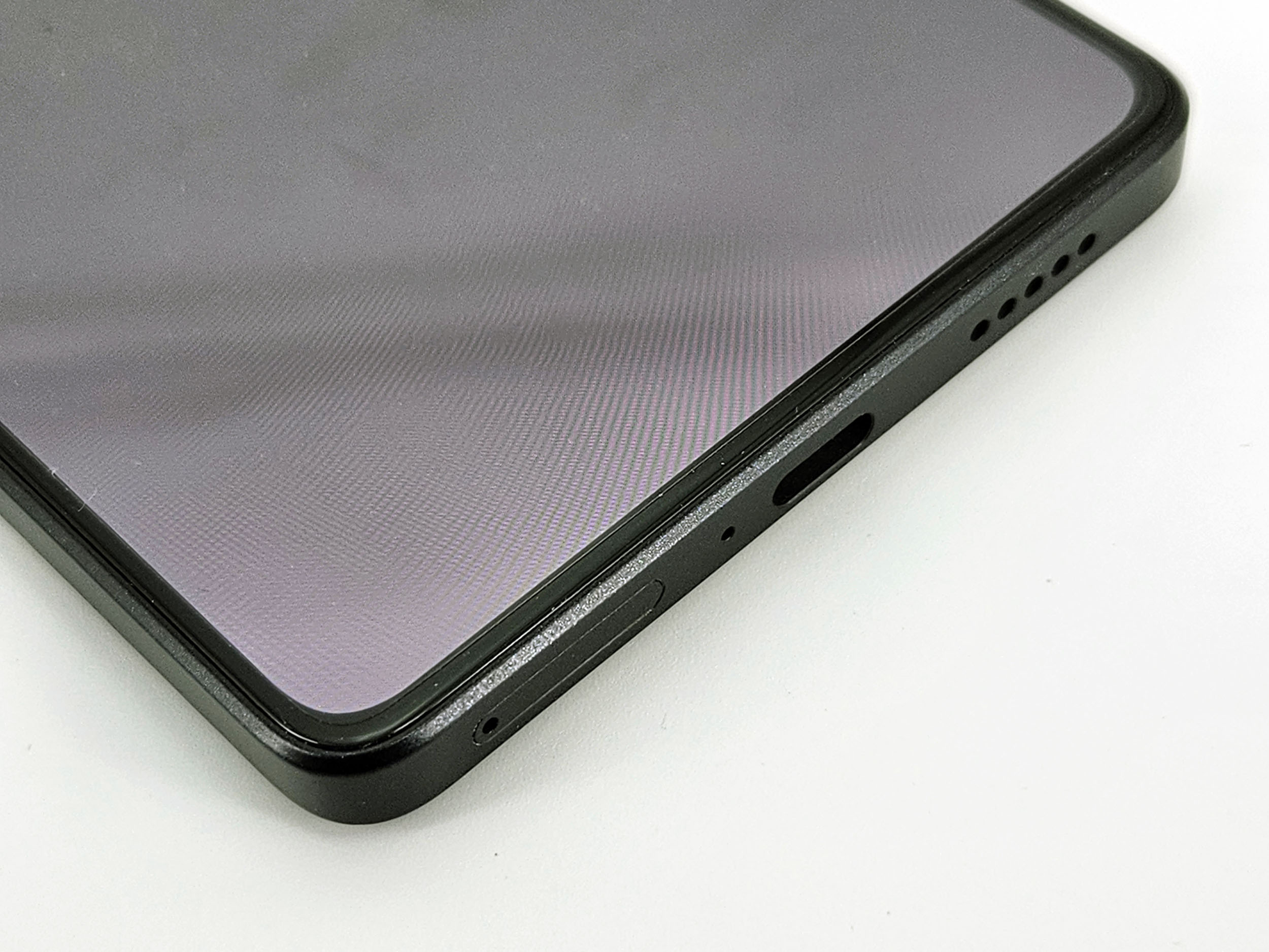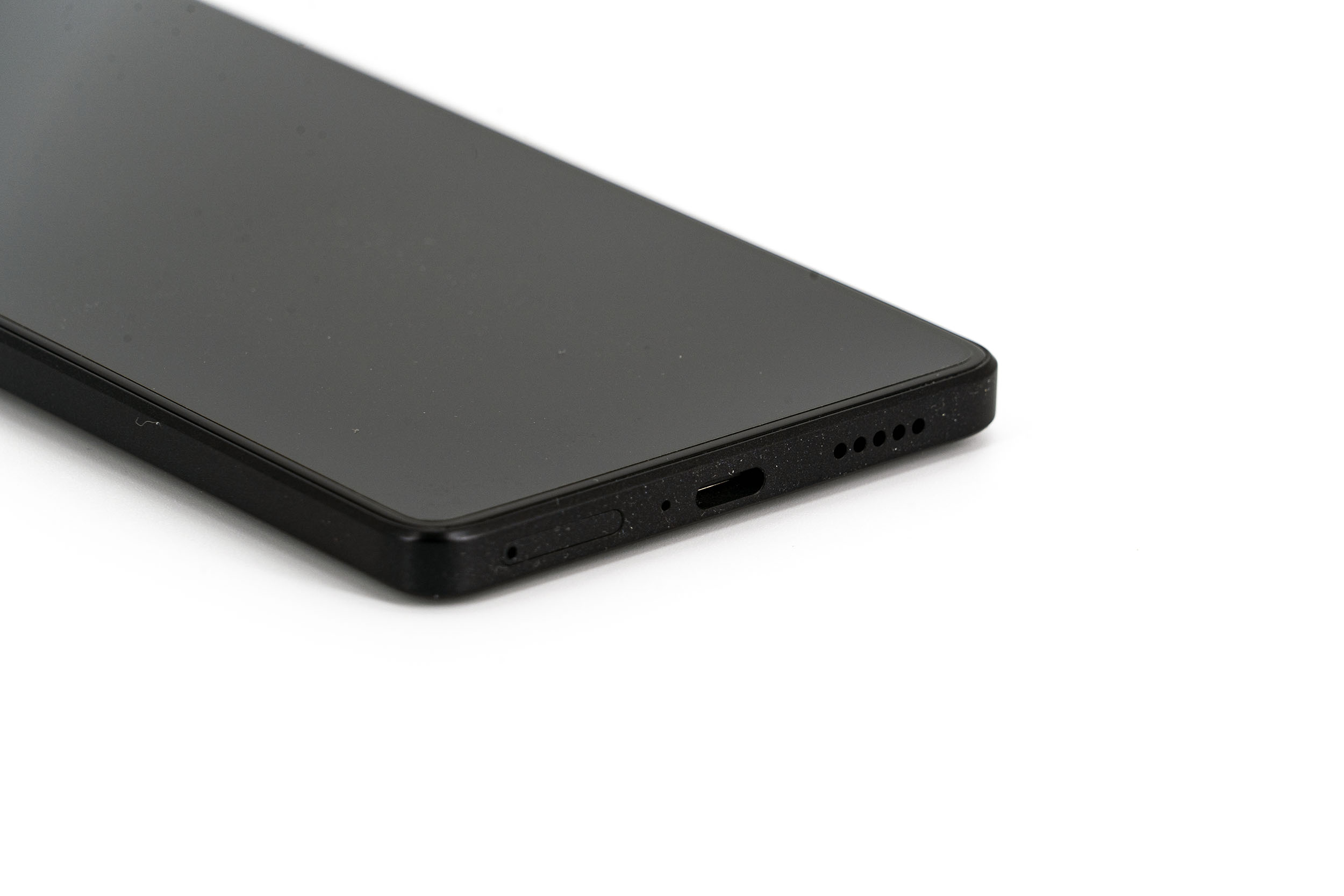 Sur la partie inférieure, on retrouve le port usb type c, une sortie audio, un tiroir sim type recto/verso et un capteur de son.