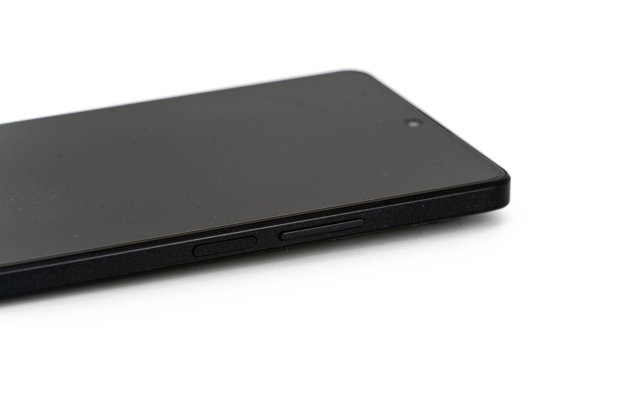Sur le côté droit on retrouve les habituels boutons de volume et le bouton de démarrage qui est également utilisé comme capteur d’empreinte. Ces boutons sont situés sur la partie haute. Si vous avez de petites mains, vous pourriez éprouver des difficultés à utiliser les boutons de volume.