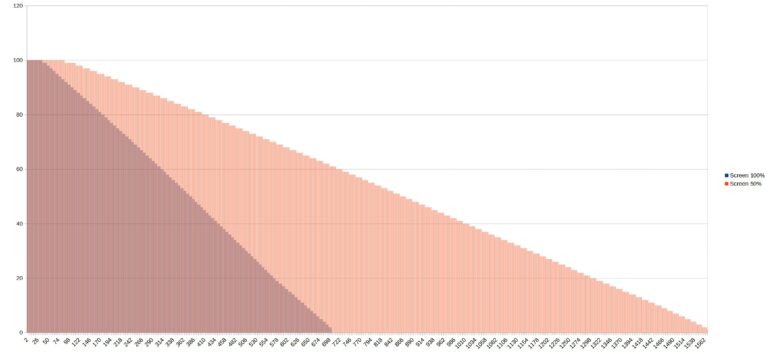 Pour tester l'autonomie des batteries j'ai développé une application qui mesure le niveau de batterie minute par minute jusqu'à ce que la batterie soit vide. Cette application consomme environ une dizaine de pourcent des ressources du téléphone et je fais un test avec une luminosité d'écran à 100% et un autre avec une luminosité à 50%. Ce test vise à reproduire une utilisation contemplative d'un téléphone (ex: surfer sur internet, lire des articles, passer du temps sur les réseaux sociaux). Ces résultats ne sont pas valables pour une utilisation intensive type gaming/streaming. [battery] Autonomie de batterie